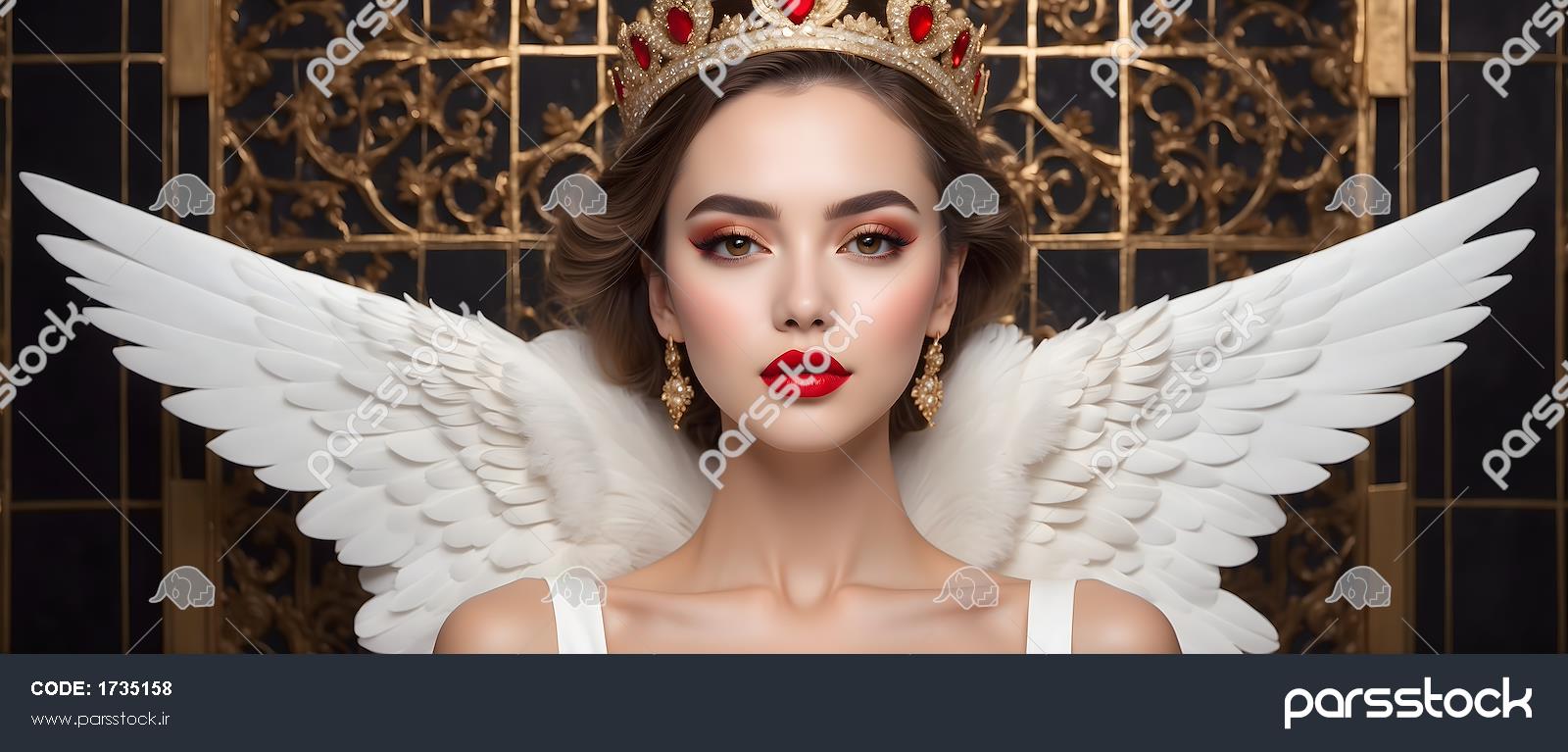 فرشته با موهای تیره و بالهای سفید در لباس طلایی و سفید، تصویرسازی اساطیری فرشته بلوند با لباس قرمز و بالهای طلایی سفید در پسزمینه تیره فرشته بلوند با لباس طلایی و بالهای سفید در پسزمینه هندسی فرشته شاهزاده خانم با تاج و بالهای سفید و لباس طلایی در کاخ فرشته بالدار با لباس سفید و تاج طلایی و جواهرات ظریف، تصویرسازی پریان فرشته با بالهای طلایی سفید و لباس سفید در پسزمینه سلطنتی فرشته بلوند با لباس سفید طلایی و بالهای سفید در شب پرستاره فرشته با لباس قرمز و طلایی در میان تزئینات آبی و سنتی فرشته بلوند با لباس قرمز و بالهای سفید در دکوراسیون آبی طلایی فرشته با لباس آبی و طلایی و بالهای باشکوه، تصویرسازی هنری نمایش همه