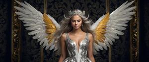 ملکه با بالهای طلایی و لباس آبی سلطنتی، شکوه و آرامش الهه با بالهای طلایی و لباس آبی فیروزهای، در آرامش کامل فرشته با بالهای طلایی و لباس نقرهای در آرامش و تمرکز فرشته با بالهای طلایی و لباس آبی سلطنتی در آرامش الهه بالدار با بالهای طلایی و لباس آبی و طلایی، زیبایی و آرامش فرشته با بالهای طلایی و لباس سبز تیره، الهه آرامش فرشته با تاج گل طلایی و بالهای طلایی در لباس آبی، آرامش و زیبایی ملکه با بالهای طلایی و لباس نقرهای مجلل در خلسه عمیق ملکه فرشته با بالهای طلایی باشکوه و لباس سفید در پسزمینه سلطنتی الهه باشکوه با بالهای طلایی و لباس سفید و طلایی، ملکه آسمان نمایش همه