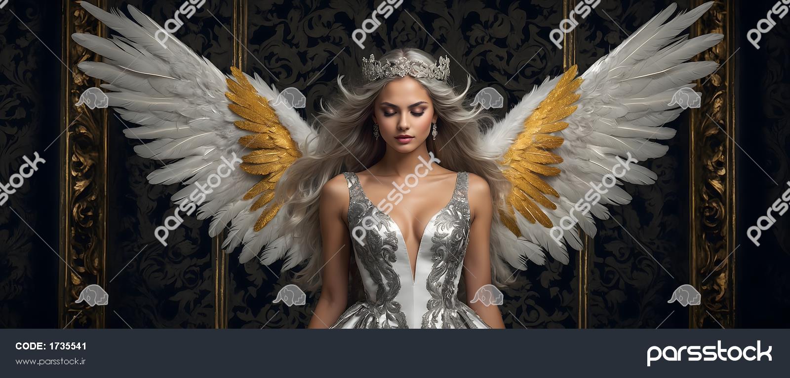 ملکه فرشته با بالهای طلایی، تاج و لباس طلایی و سفید ملکه فرشته با بالهای طلایی و سفید، لباس فیروزهای سلطنتی ملکه بالدار با تاج و لباس طلایی و سفید، شکوه و جلال آسمانی فرشته با موهای نقرهای و بالهای طلایی، لباس سفید و طلایی ملکه بالدار با لباس آبی سلطنتی و تاج طلایی فرشته با موهای تیره و بالهای طلایی در لباس آبی و طلایی، در حال مراقبه ملکه الهی با بالهای سفید طلایی و لباس مجلسی در دکور سلطنتی ملکه تاجدار با بالهای طلایی و لباس آبی سلطنتی روی تخت الهه با بالهای طلایی و لباس طلایی و سفید در حالت دعا یا نیایش الهه با بالهای طلایی و لباس مجلسی سفید با تاج در حال مراقبه نمایش همه