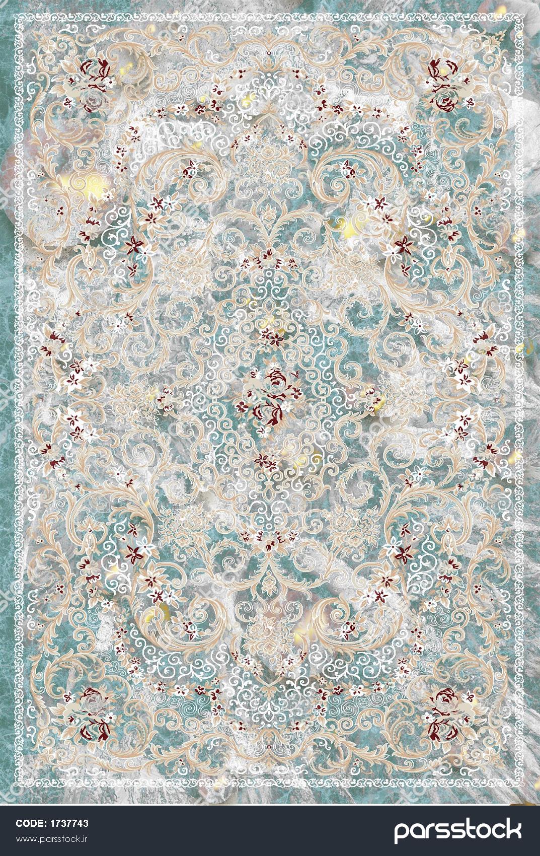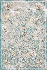 فرش افشان اسلیمی فیروزه ای طلایی روشن طرح ماندانا