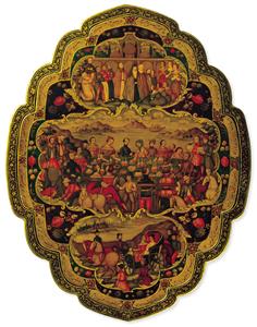 قاب آینه لاکی با نقاشی داستان شیخ صنعان و دختر ترسا، اثر محمد اسماعیل نقاشباشی اصفهانی قاب آینه لاکی دیدار ناصرالدین میرزا و تزار نیکلای اول، اثر محمد اسماعیل اصفهانی قاب آینه لاکی با نقاشی دیدار ناصرالدین میرزا و تزار نیکلای اول، اثر محمد اسماعیل اصفهانی قاب آینه لاکی محمد باقر اصفهانی، بانویی با لباس اروپایی و بادبزن قاب آینه لاکی محمد باقر اصفهانی با طرح گل و مرغ زرین، اهدایی ابوالعلاء سودآور قاب آینه لاکی محمد باقر اصفهانی با طرح گل و مرغ زرین، اهدایی ابوالعلاء سودآور نگارگری شاهنامه، یاری سیمرغ در زایش رستم، اثر محمد زمان اصفهانی نقاشی میلاد مسیح به سبک ایرانی، نگارگری مذهبی قاب آینه لاکی، رقم محمد باقر، آبرنگ و کواش و طلا بر روی پاپیه ماشه نگارگری خلوت عشاق، اثر محمد قاسم اصفهانی، دوره صفوی نگاره قاب آینه هشت ضلعی لاکی نمایش همه