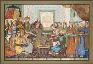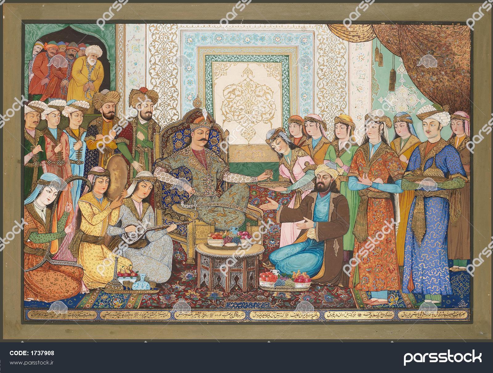مینیاتور شاه شجاع و خواجه حافظ نقاشی آبرنگ گواش و طلا روی کاغذ نگارگری گلستان سعدی، صحنه کشتی در دربار، اثر محمود مذهب بخارایی نگارگری رضا عباسی، جوان با بالاپوش خز در باغ، سبک صفوی اصفهان نقاشی معاصر مهمانی چای، ترکیبی از سبک ایرانی و شرقگرای اروپایی نگارگری جوانی لمزده از محمد یوسف اصفهانی، سبک مکتب اصفهان اثر نقاشی زیبای ایرانی به سبک با نام نی زن طراحی زائر نقاشی مینیاتور و نگارگری آهو حرم امام رضا اثر رحیم عظیمی نگارگری رضا عباسی، جوان ایستاده با انار، سبک صفوی نقاشی مینیاتور زیبا و نگارگری دختر ایرانی اثر رحیم عظیمی نگارگری دو دیو نوازنده کمانچه با جام، سبک قرن نهم خورشیدی اثر محمد سیاه قلم نمایش همه