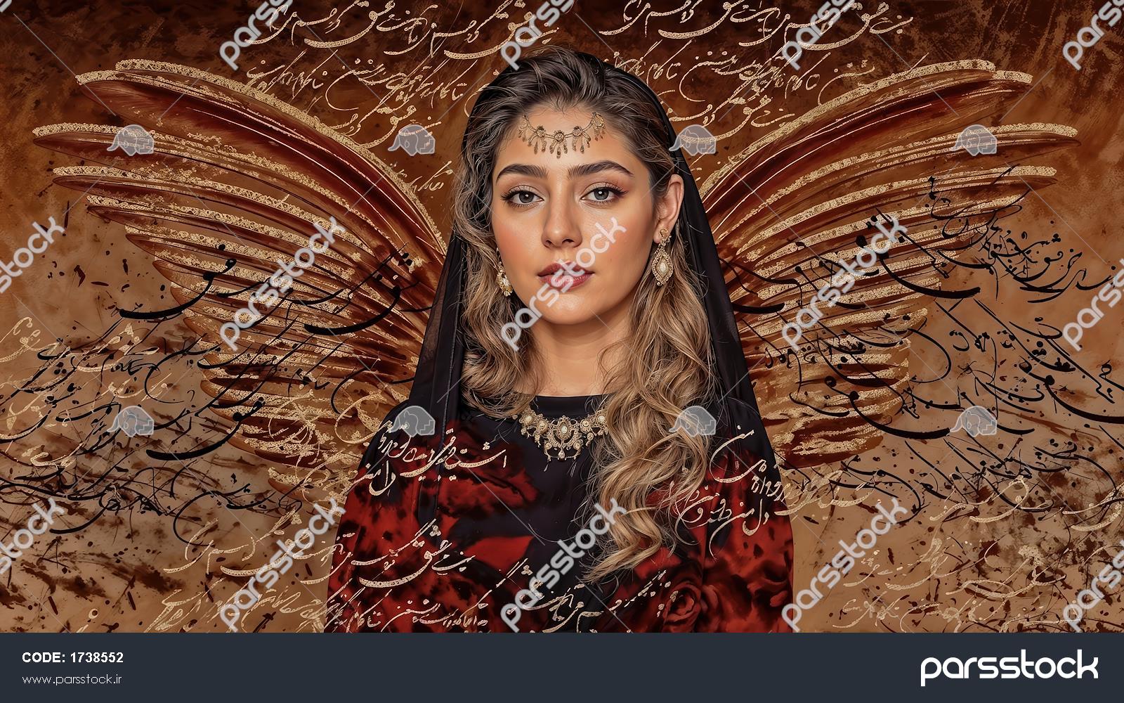 دیجیتال آرت سیاه و سفید زن ایرانی با خوشنویسی و پروانه دیجیتال آرت زن ایرانی با روسری مشکی و خوشنویسی فارسی دیجیتال آرت پرتره زن ایرانی با خوشنویسی سنتی دیجیتال آرت زن ایرانی با طرح فرش و خطوط نستعلیق دختر ایرانی زیبا با تاج و بال های فرشته در ترکیبی از دیجیتال آرت و خوشنویسی پرتره زن با تاج سلطنتی، پروانه و خوشنویسی ایرانی هنر دیجیتالی از دختر ایرانی جوان با تاج و بلهای فرشته و خوشنویسی فارسی دیجیتال آرت زن ایرانی با طرح فرش و پروانه رنگی مجسمه فرشته با خوشنویسی عشق اثر دیجیتال آرت سامان رئوفی تصویرسازی زن ایرانی با موی بافته شده و بالهای سفید و خطاطی نمایش همه