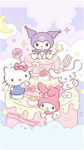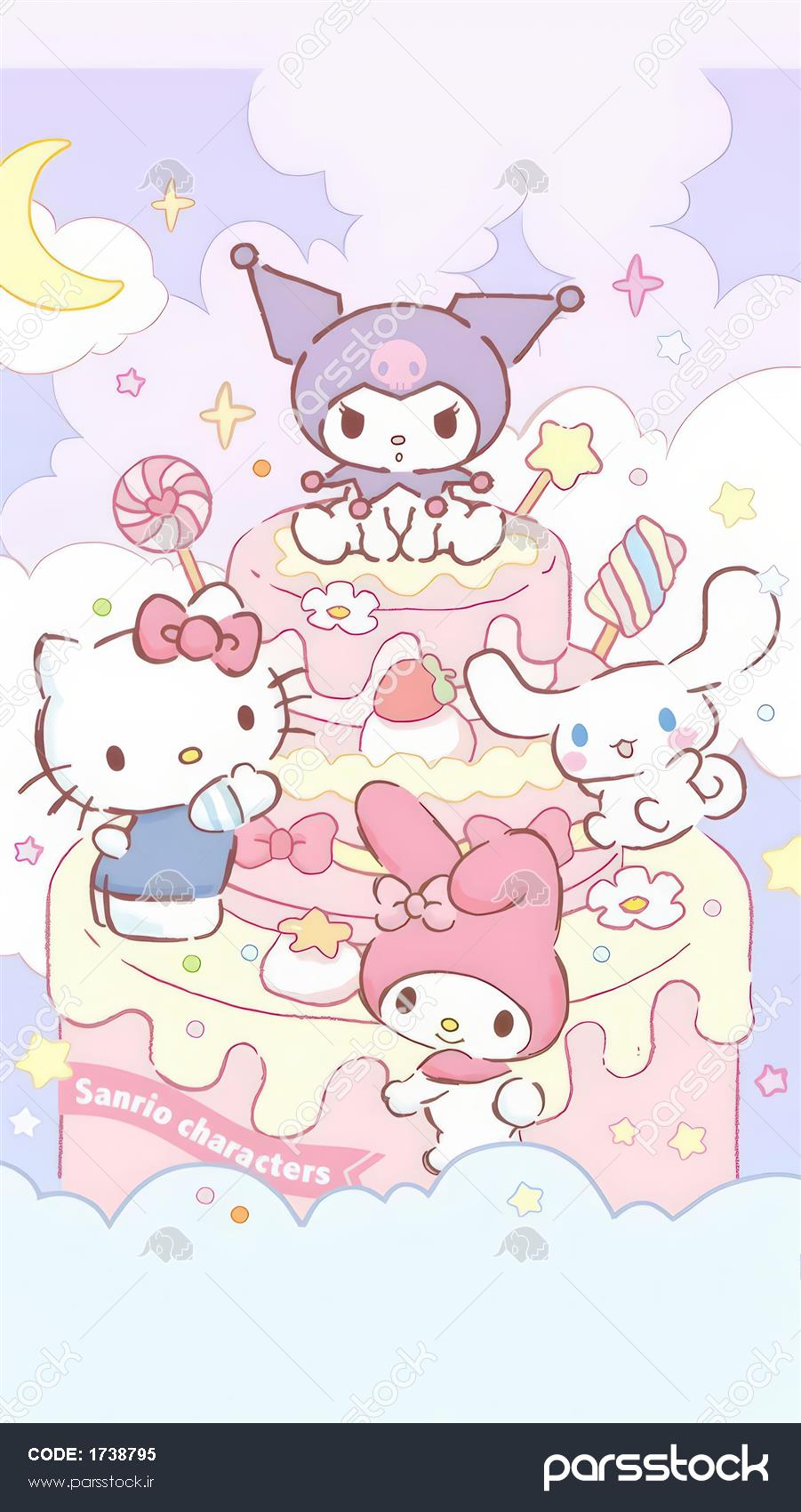 والپیپر جشن تولد با شخصیت های سانریو روی کیک