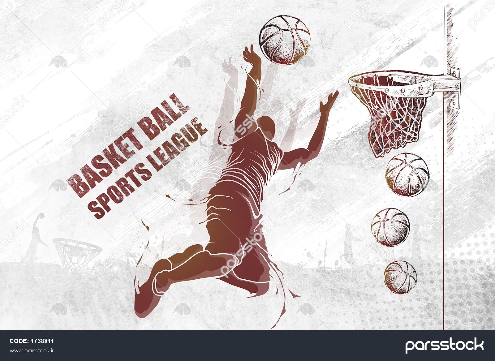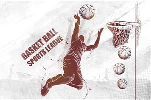 پوستر دیواری بسکتبال ورزشی مدرن با زمینه روشن و رنگ آجری سفید و نوشته انگیزشی مرتبط
