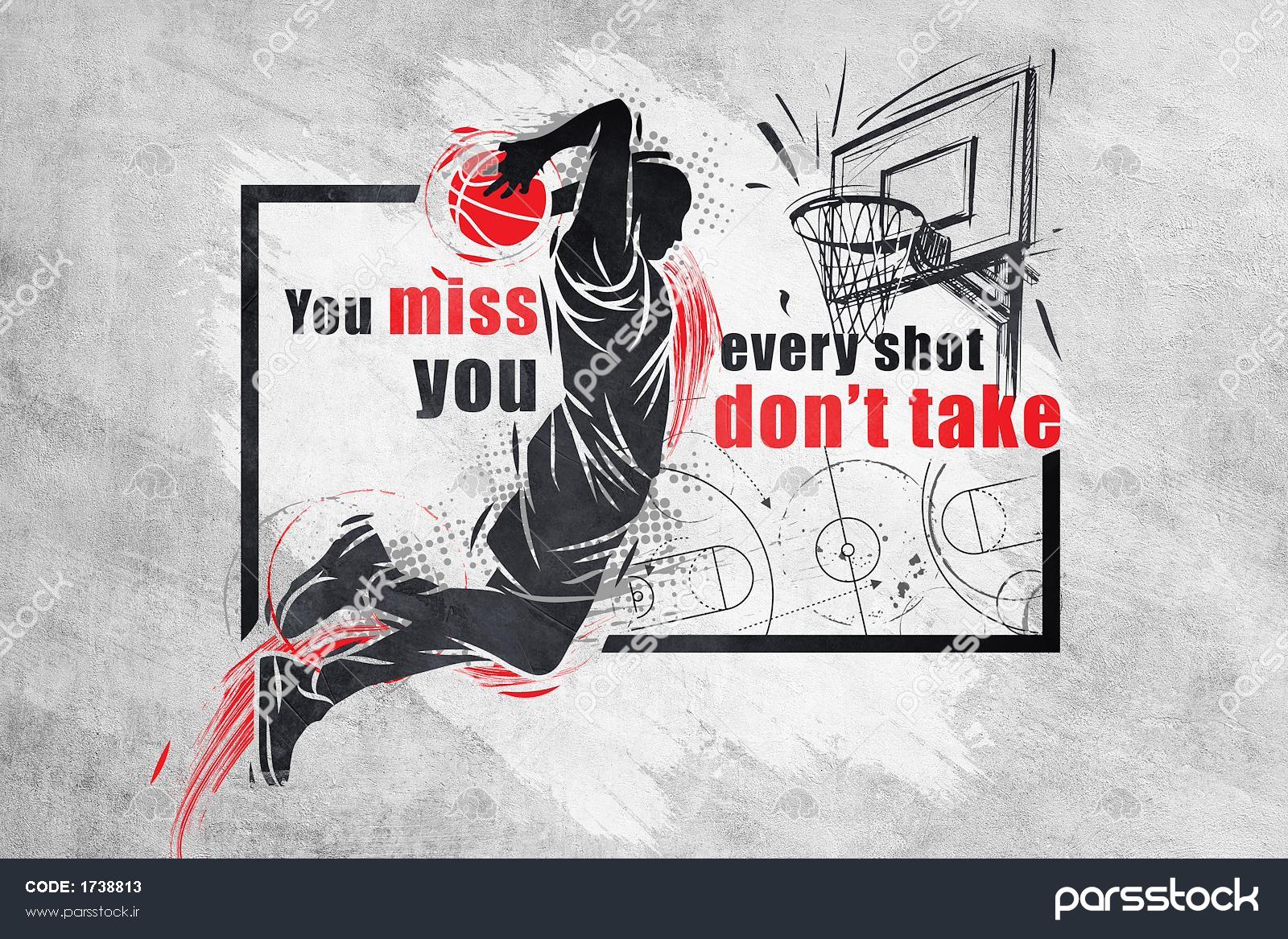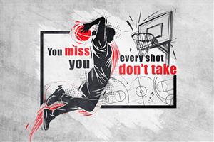 پوستر دیواری بسکتبال با طراحی گرافیکی جذاب سه بعدی و نوشته های انگیزشی و موفقیت