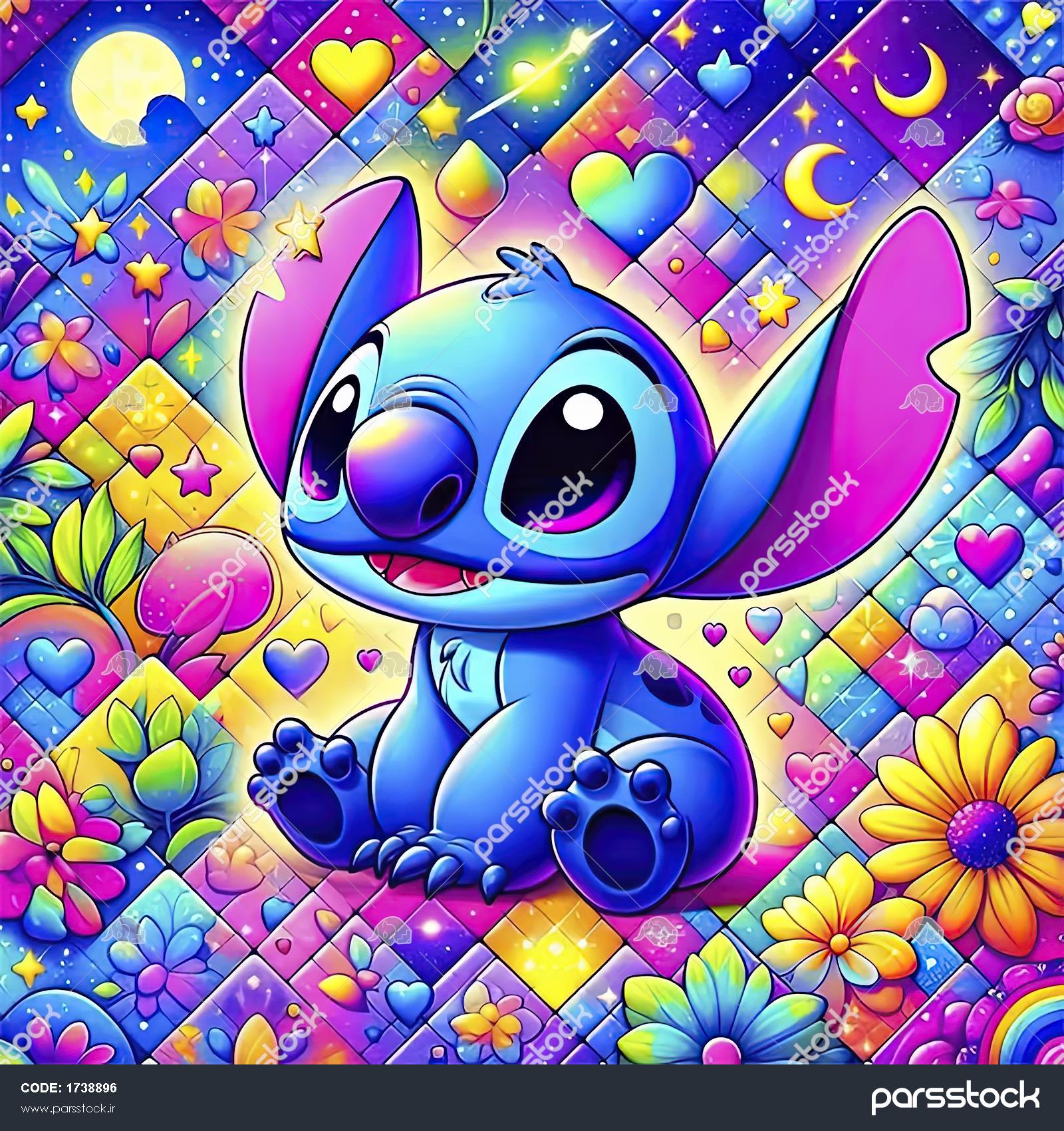 استیچ در میان گلهای رنگارنگ شاد استیچ رنگارنگ با گلهای گرمسیری و درخشان استیچ شاد با گلهای رنگارنگ و لبخند بزرگ استیچ یونیکورن بامزه در دنیای رنگینکمانی استیچ در میان گلها و نخلهای استوایی استیچ رنگارنگ با پسزمینه نقاشی استیچ و دوستش در آسمان شب با پروانهها و ماه دو لبوبو فانتزی در دنیای رنگارنگ مناسب چاپ پوستر و روتختی کودکانه استیچ یونیکورن فانتزی با رنگینکمان استیچ با تاج گل و پسزمینه گلدار نمایش همه