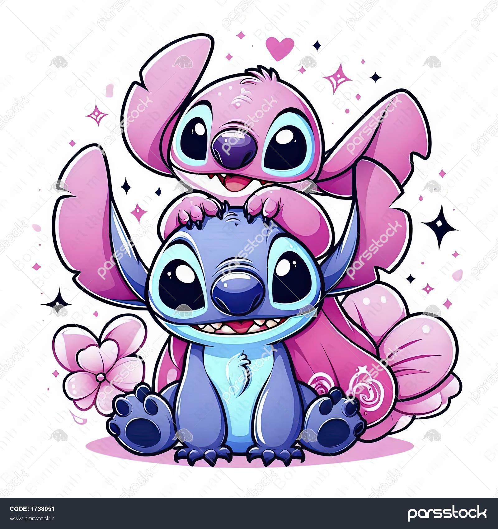 عکس فانتزی استیچ و آنجل صورتی در آغوش هم برای چاپ