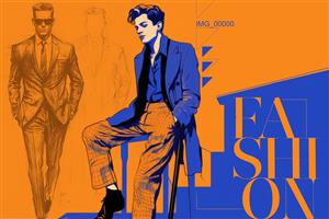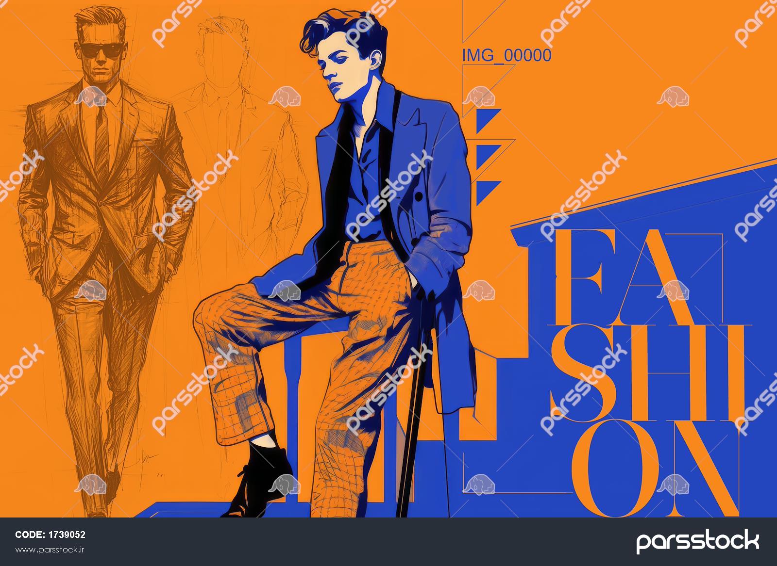 پوستر دیواری بوتیک مردانه استایل اسپرت با تم رنگی نارنجی