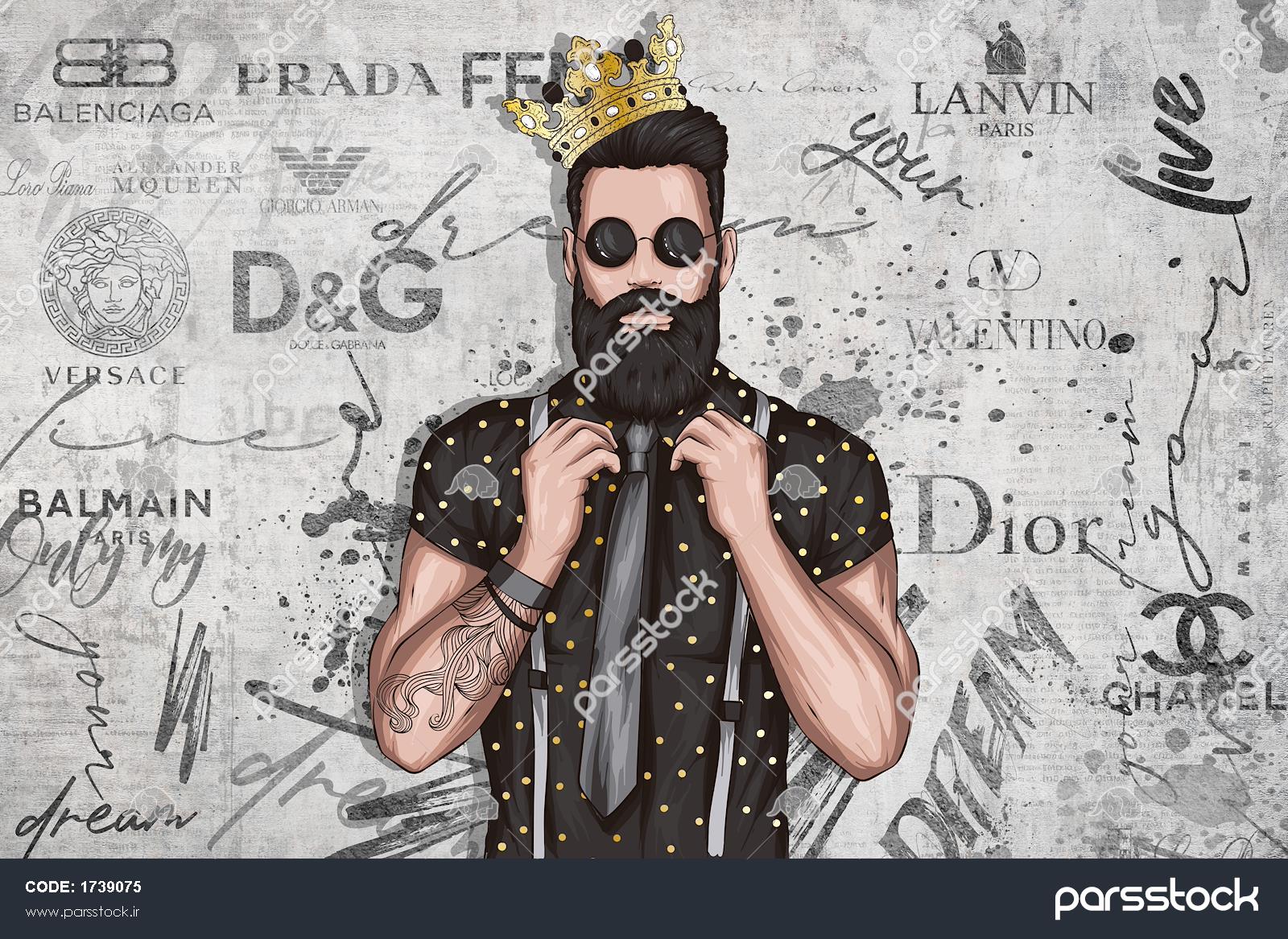پوستر دیواری سه بعدی بوتیک مردانه با طراحی مدرن با لوگو های معروف