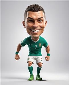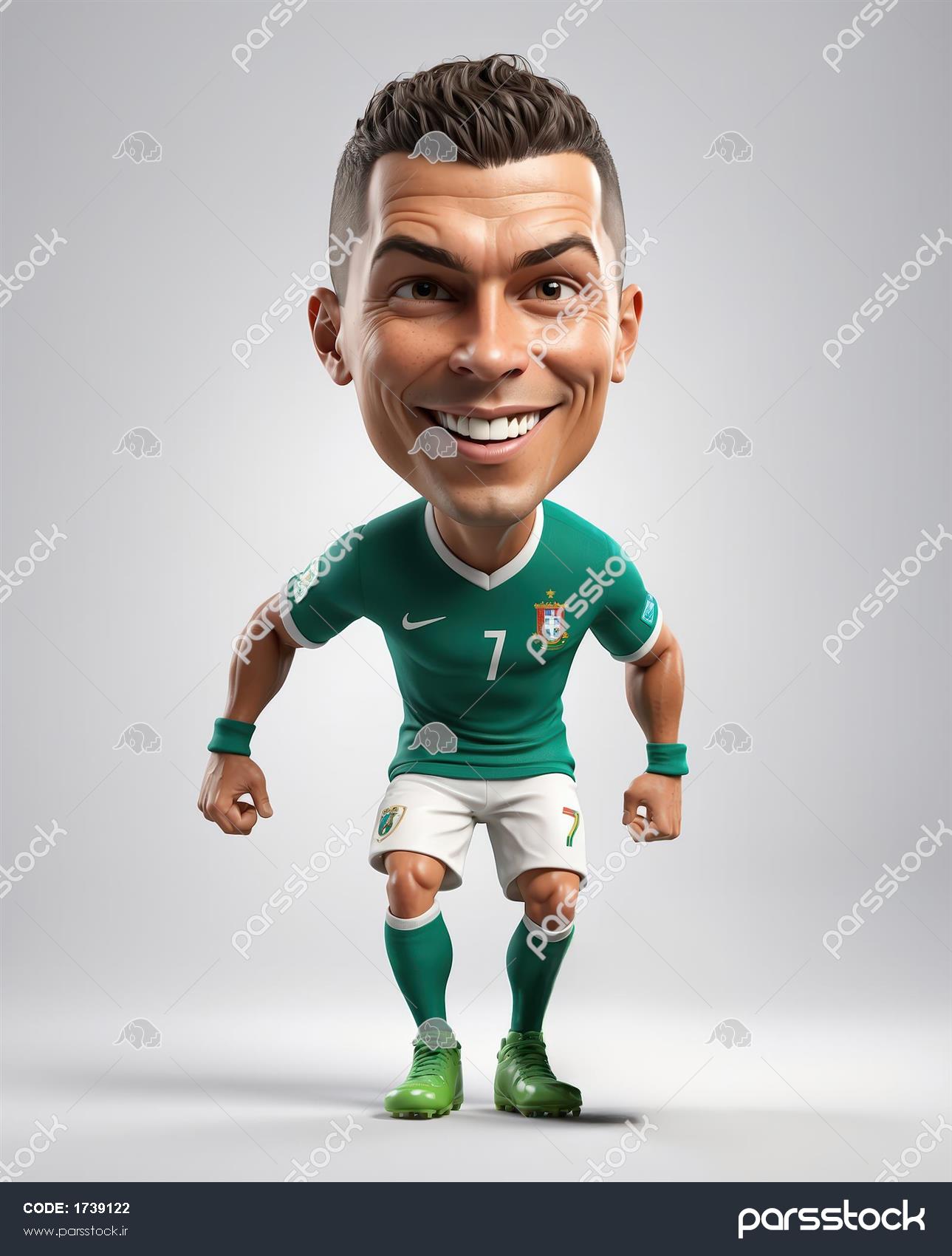 طرح انیمیشنی رونالدو با لباس سبز و کفش نئونی با لبخند باز