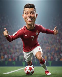 تصویر گرافیکی رونالدو در حال دریبل زدن با لباس قرمز و ژست موفقیت در زمین چمن