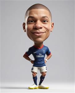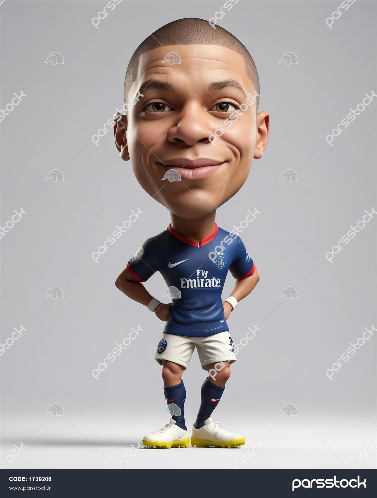 کاریکاتور ایستاده امباپه با سر بزرگ و پیراهن پاری سن ژرمن با دست روی کمر (فایل باکیفیت)
