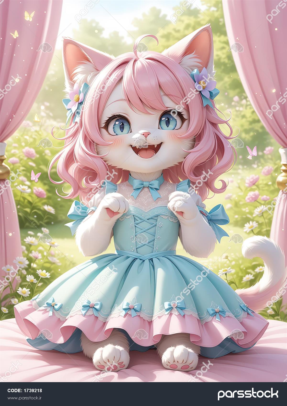 عکس گربه کارتونی با موهای صورتی در باغ شکوفههای بهاری با لباس آبی و صورتی طرح گرافیکی گربه کیوت با موی صورتی و لباس آبی و صورتی پفدار (استایل فانتزی و انیمیشنی) صویر باکیفیت گربه بامزه با چشمان آبی در میان پردههای صورتی و گلهای بهاری پوستر گربه اشرافی با موهای بلوند و لباس مجلسی آبی بنفش در غروب شفقگون کوهستان (طرح سلطنتی) عکس گربه مشکی پرنسسی با لباس مجلسی پفدار و تاج الماس در کوچه قدیمی اروپایی زیر آسمان شب تصویر گربه پری طوسی با بالهای درخشان و لباس مجلسی بنفش در قصر تاریک (جلوه جادویی) مای ملودی در لباس گربه پشمالو صورتی تصویر عمودی گربه فانتزی با موهای صورتی، پیراهن پرنسسی پاستلی و نور خورشید انیمه دختر گربه ای با موهای قهوه ای با لباس و چکمه های آبی در پس زمینه خاکستری پسر گربه ای لباس آبی نقاشی دیجیتال نمایش همه