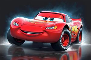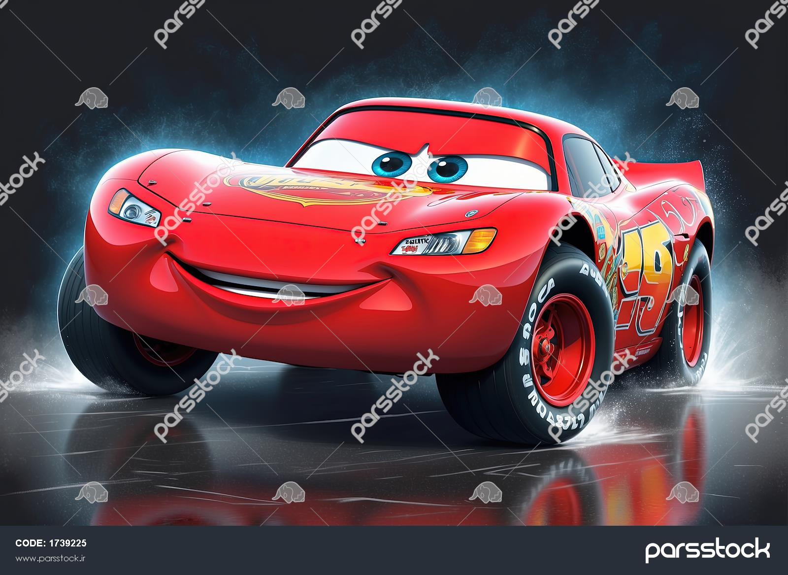 عکس کلوزآپ لایتنینگ مک‌کوئین با نگاه متمرکز و جلوه مه‌آلود (تصویر باکیفیت بالا برای دکور)
