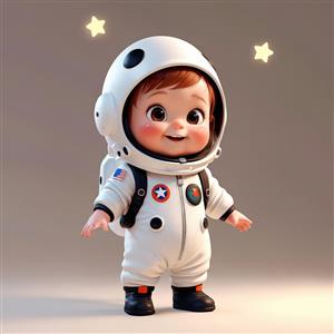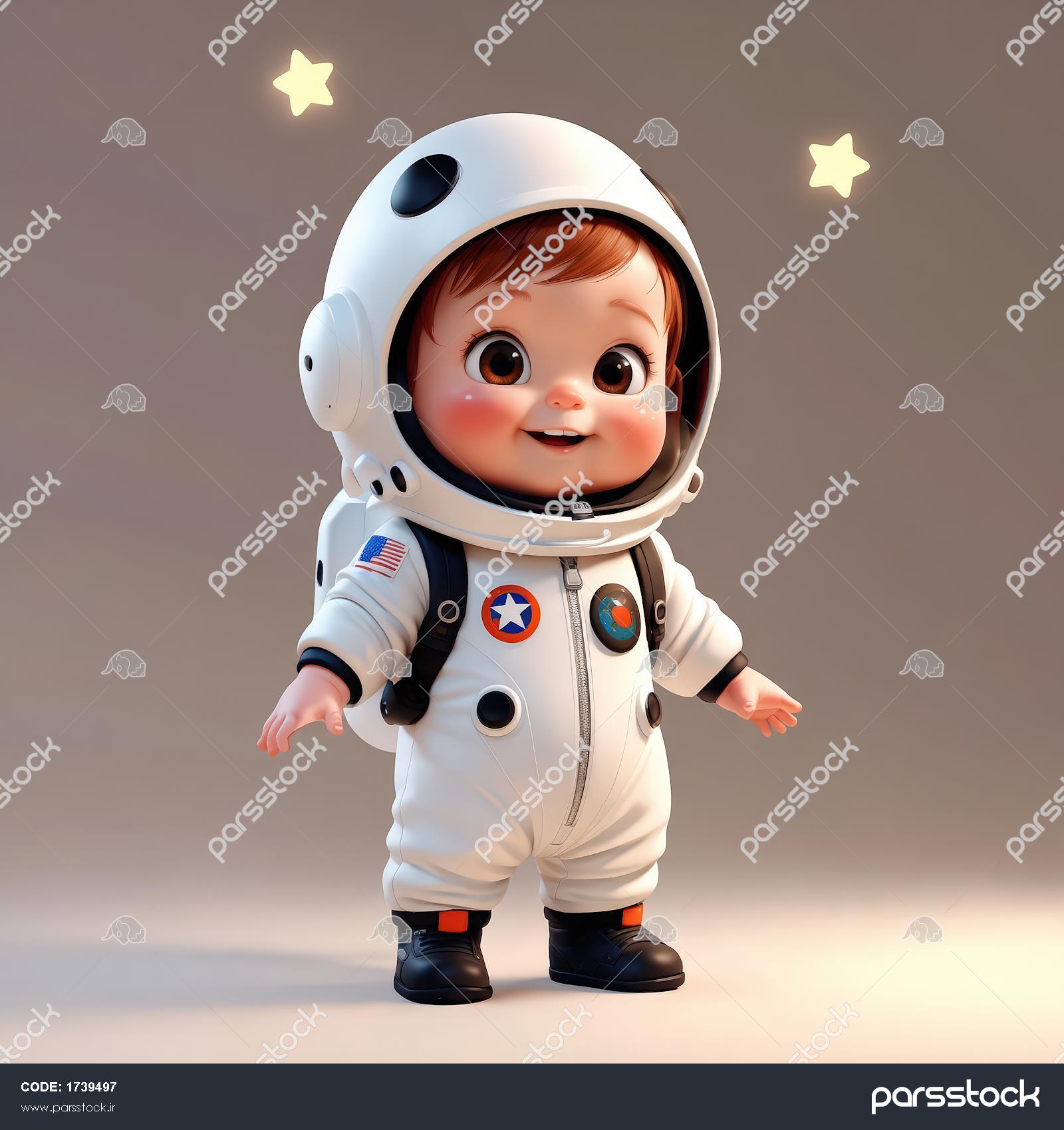 عکس باکیفیت کودک فضانورد با لباس سفید (پرچم آمریکا)، پس‌زمینه ساده، مناسب چاپ عریض و تابلو