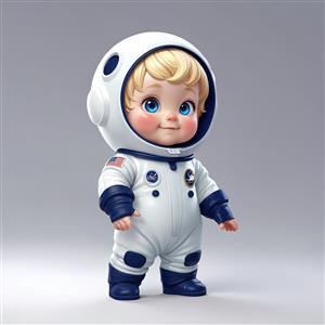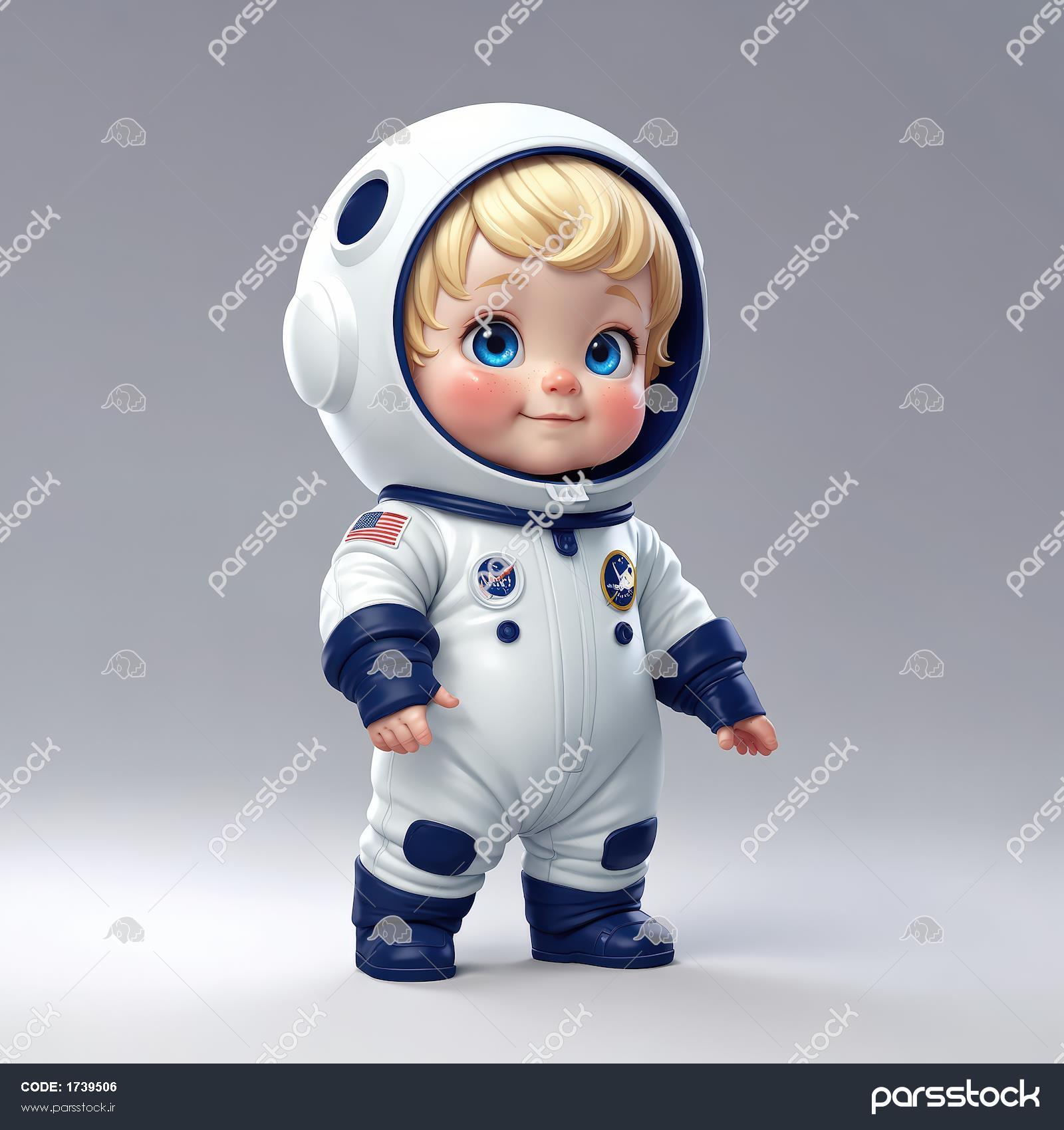 طرح گرافیکی کودک فضانورد بلوند با لباس سفید و آبی (پرچم آمریکا)، عکس استوک برای محصولات دکوراتیو