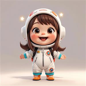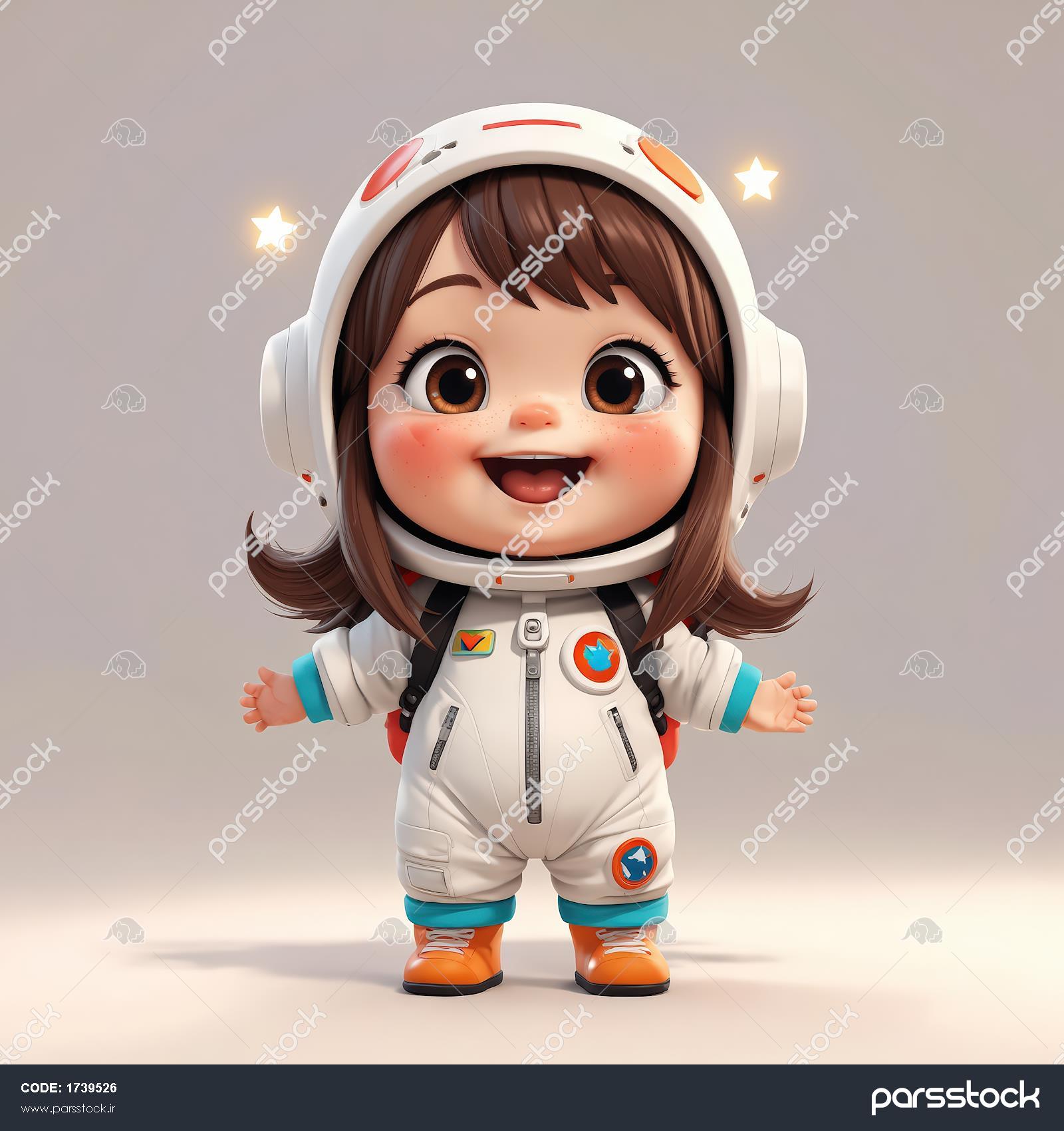 تصویر استوک دختر فضانورد با موهای قهوه‌ای کوتاه و بوت نارنجی (فانتزی)