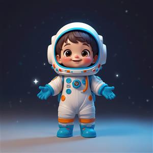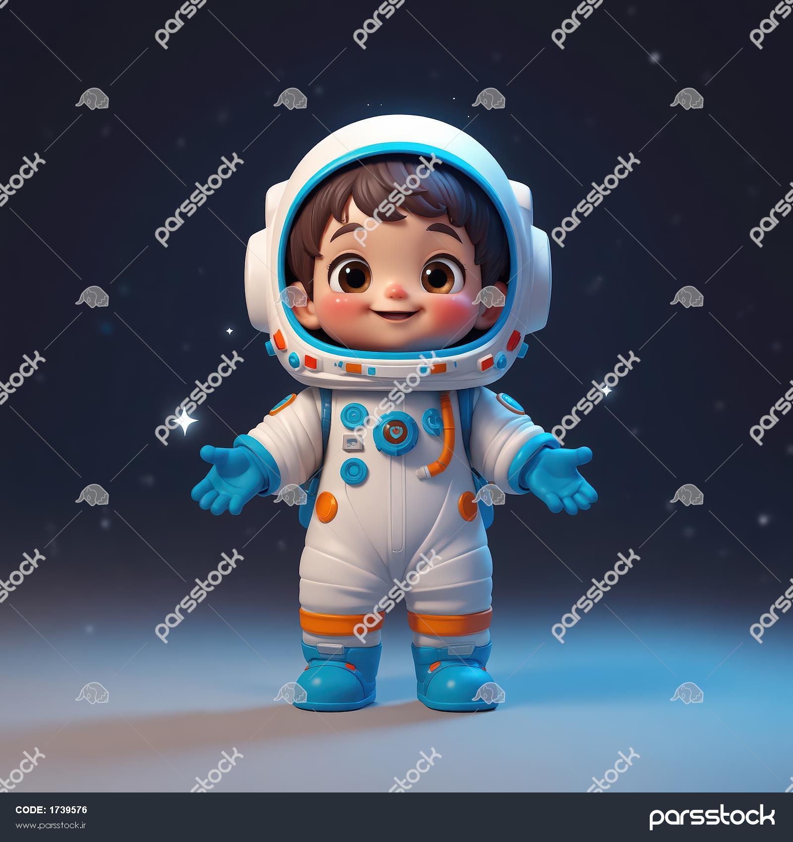 وکتور کودک فضانورد با لباس سفید و آبی در حال خوشحالی و استقبال با زمینه تیره