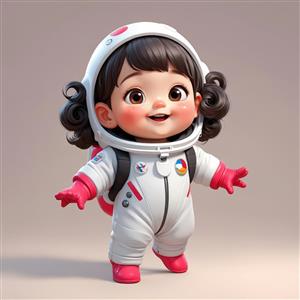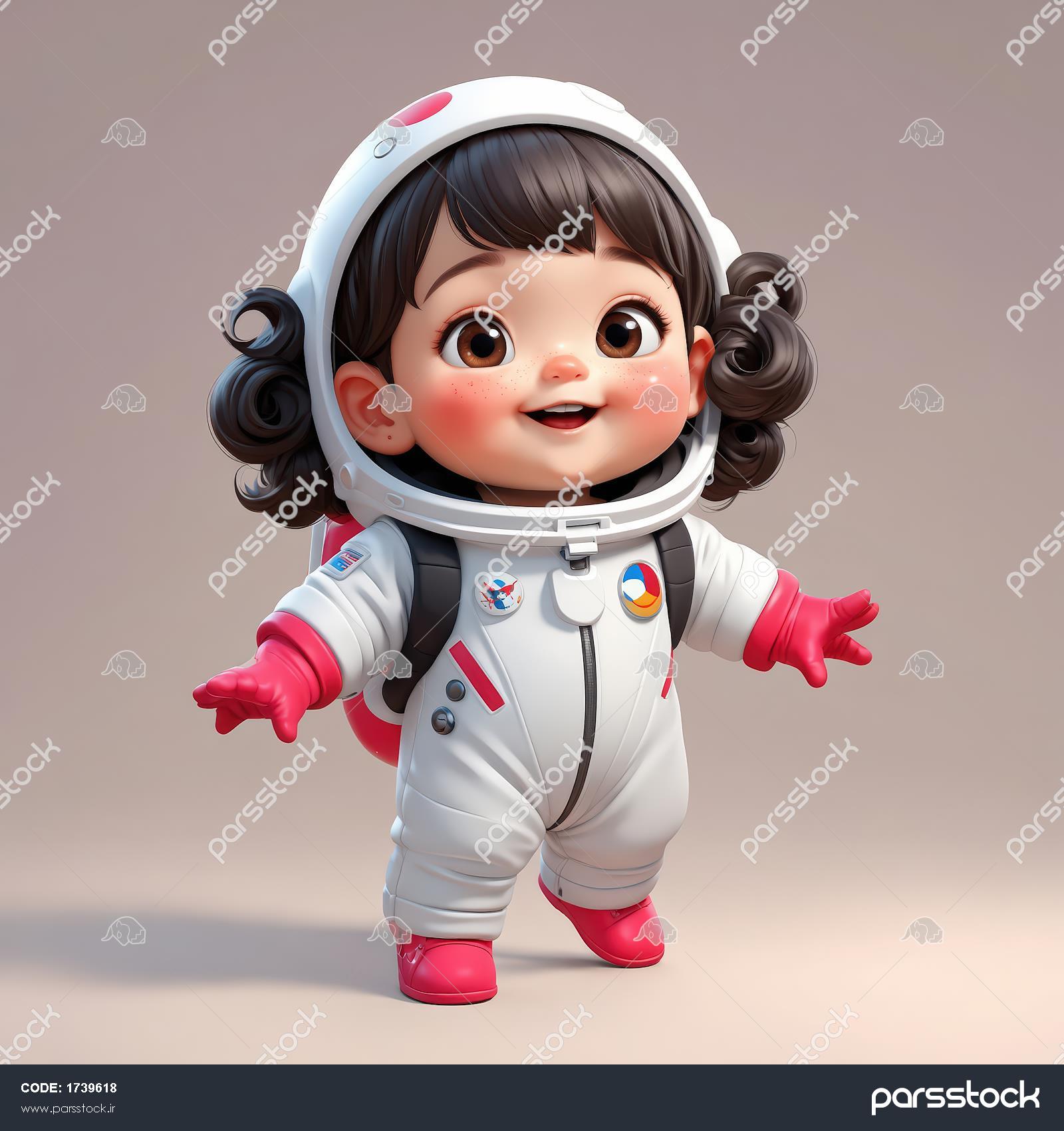 عکس باکیفیت کاراکتر دختر بچه فضانورد خندان با دستکش و چکمه صورتی (اورجینال)
