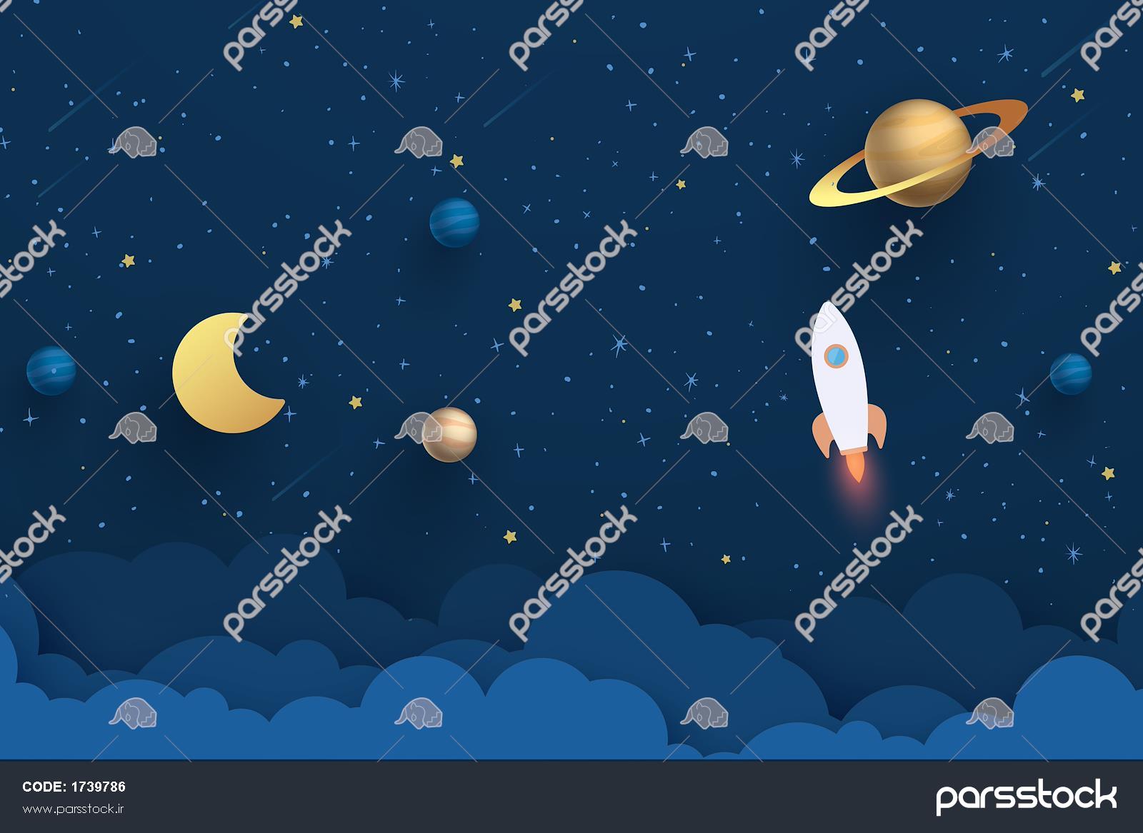 پوستر دیواری کودک کهکشان با زمینه سرمه ای زیبا