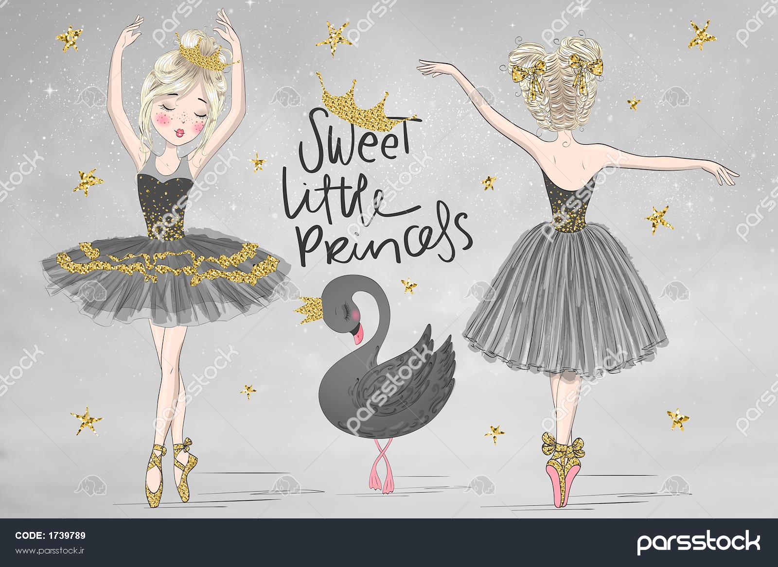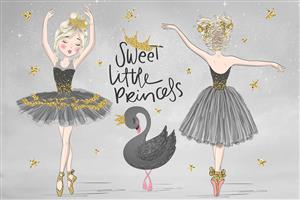 کاغذ دیواری اتاق کودک پرنسسی زمینه طوسی طلایی