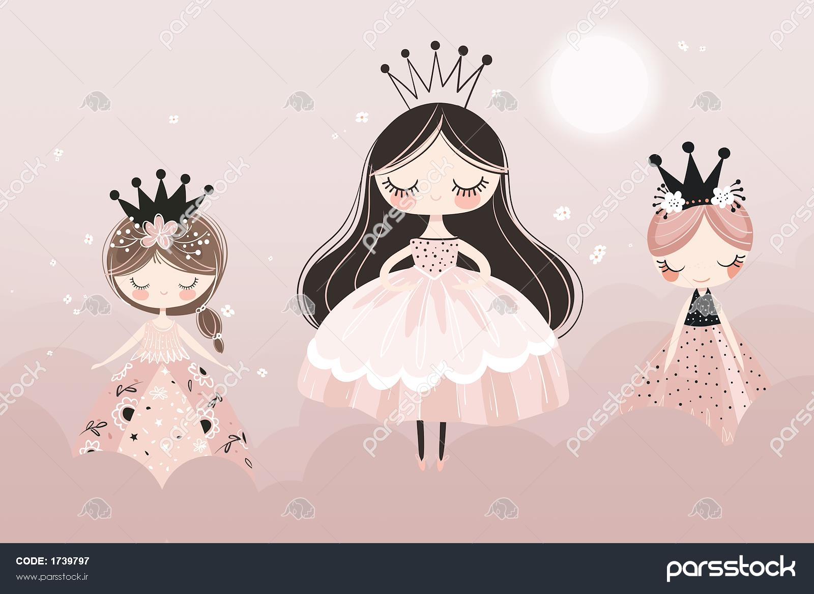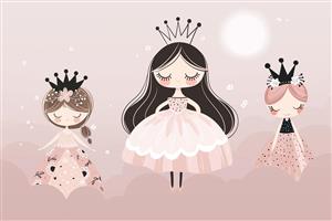 پوستر دیواری پرنسس جذاب صورتی پاستلی زمینه مخصوص دکور اتاق کودک