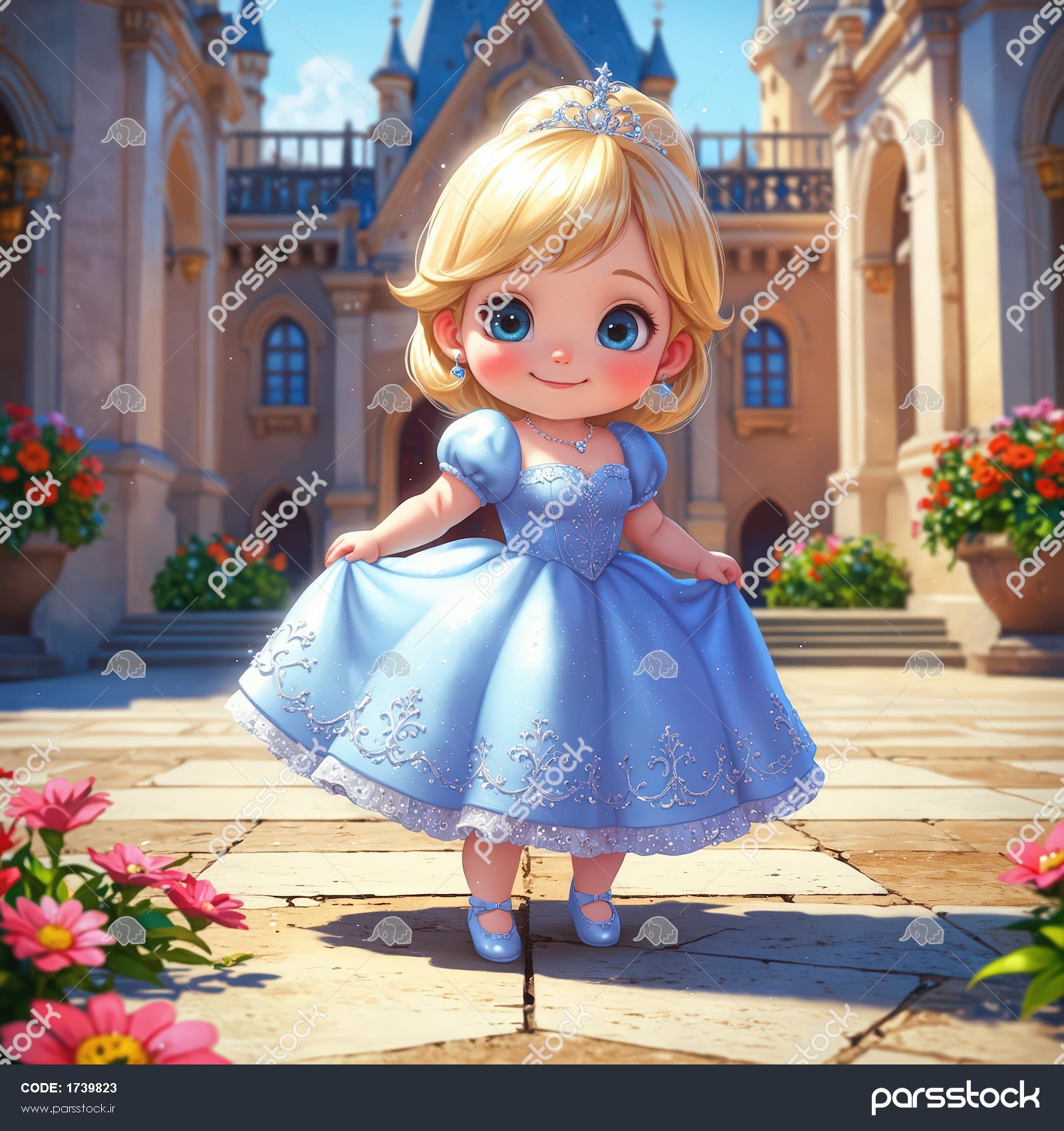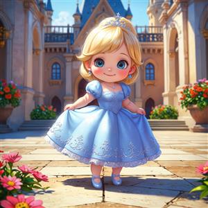 پرنسس کارتونی در حال رقص در باغ قصر با گلهای صورتی و قرمز مناسب چاپ کودکانه