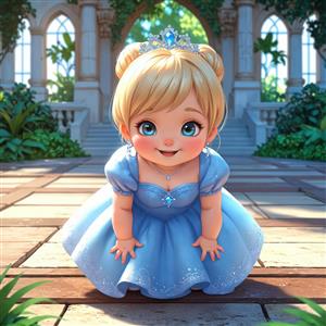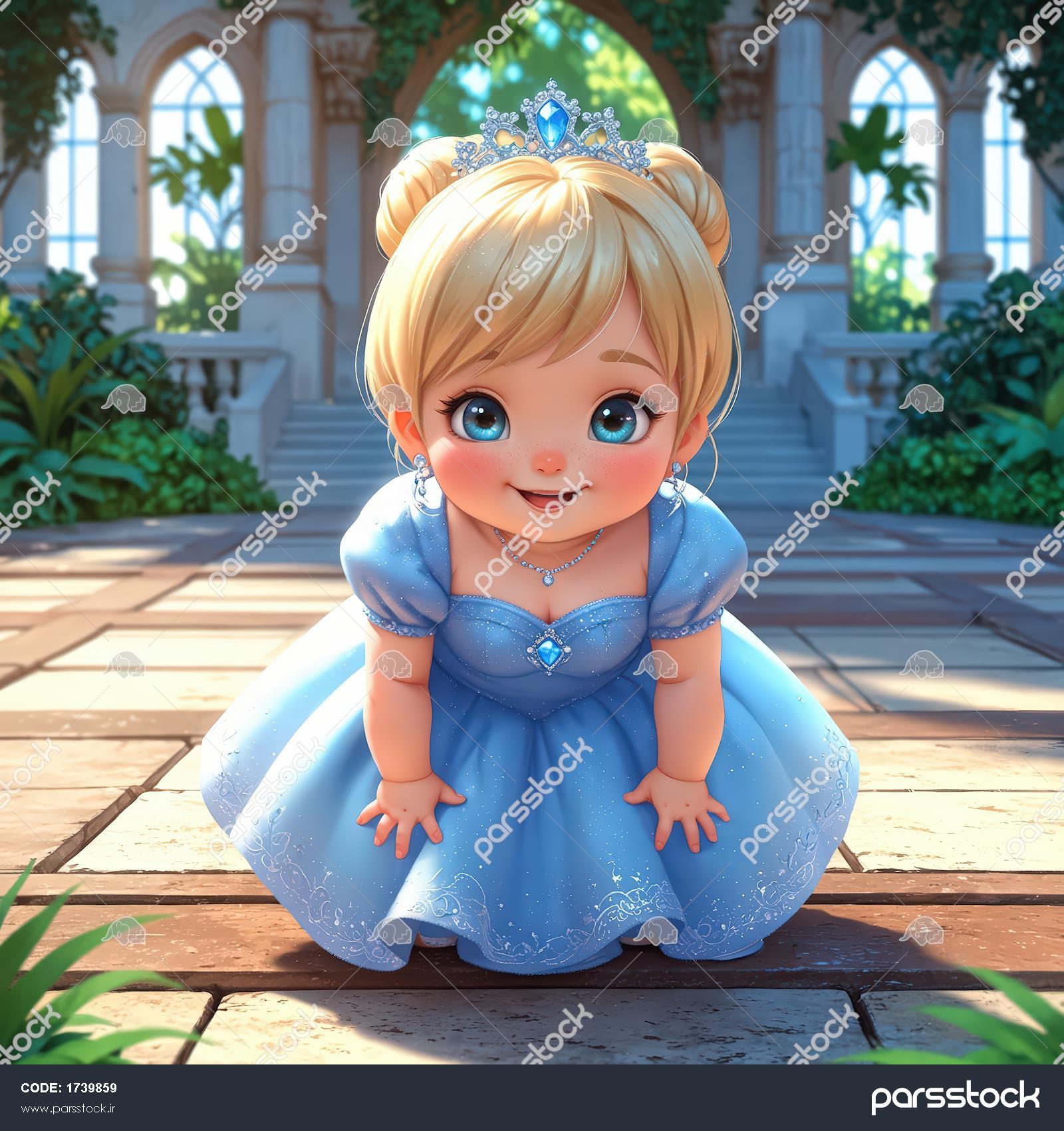 مجسمه پرنسس کارتونی در حال تعظیم در باغ قصر
