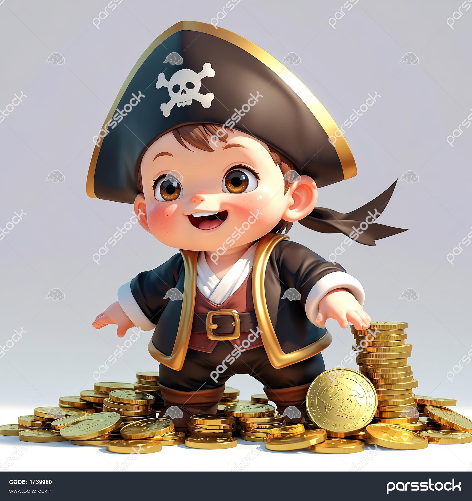 تصویر کودک دزد دریایی با روسری قرمز و آبی، کلاه سهگوش با اسکلت، ایستاده روی سکههای طلا شخصیت کارتونی دزد دریایی با انبوهی از سکههای طلای انباشته شده، کاراکتر ثروتمند و شاد کودک دزد دریایی خندان با سکههای طلا و کلاه کاپیتانی، کاراکتر سهبعدی ثروت و گنج کودک دزد دریایی با کلاه و چشمبند و صندوقچه گنج طلایی، در حال سلام کردن با دست تصویر سهبعدی کودک کاپیتان دزد دریایی با چشمبند، گوشواره حلقه طلا و اپولت طلایی، یونیفرم رسمی عروسک سهبعدی کودک با لباس دزد دریایی کلاسیک و کلاه سهگوش، کاراکتر خندان و باکیفیت بالا کودک دزد دریایی کارتونی با پیراهن و کلاه سهگوش، جلیقه آبی و شلوار قهوهای، کاراکتر ماجراجوی دریایی والپیپر اورجینال کودک دزد دریایی با بشکه کوچک پر از سکه طلا برای چاپ عریض تصویر کودک دزد دریایی در حال پیدا کردن گنج با نورپردازی دراماتیک با کیفیت بالا والپیپر اورجینال کودک دزد دریایی با سکه طلا برای چاپ عریض نمایش همه