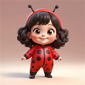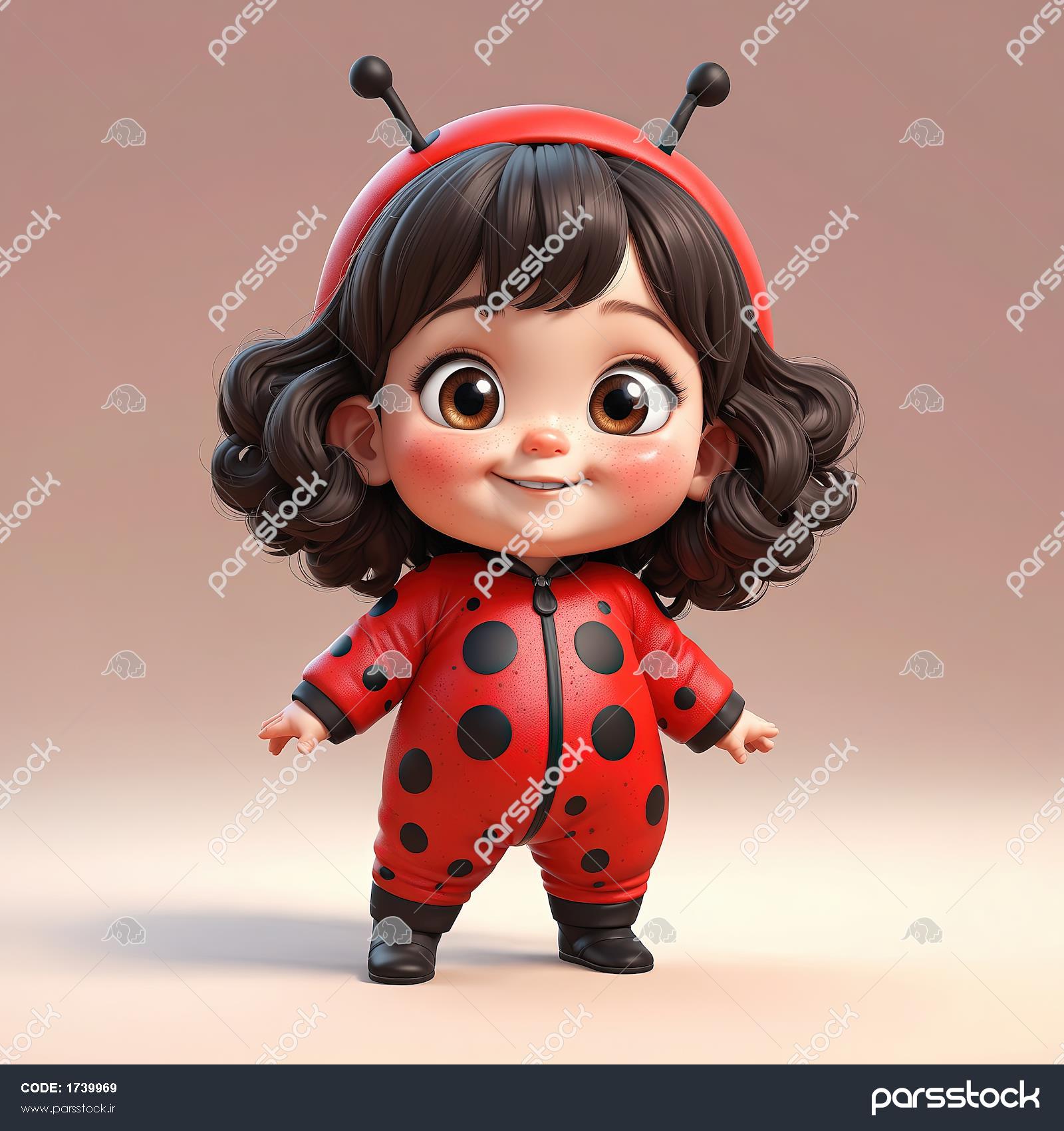 عروسک سه‌بعدی کودک با هودی کفشدوزکی ، کاپشن بادی با دکمه‌های سیاه بزرگ