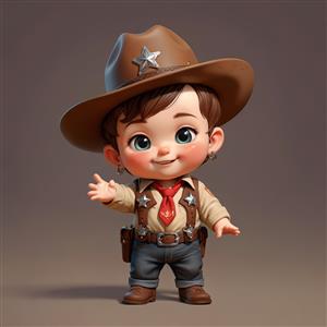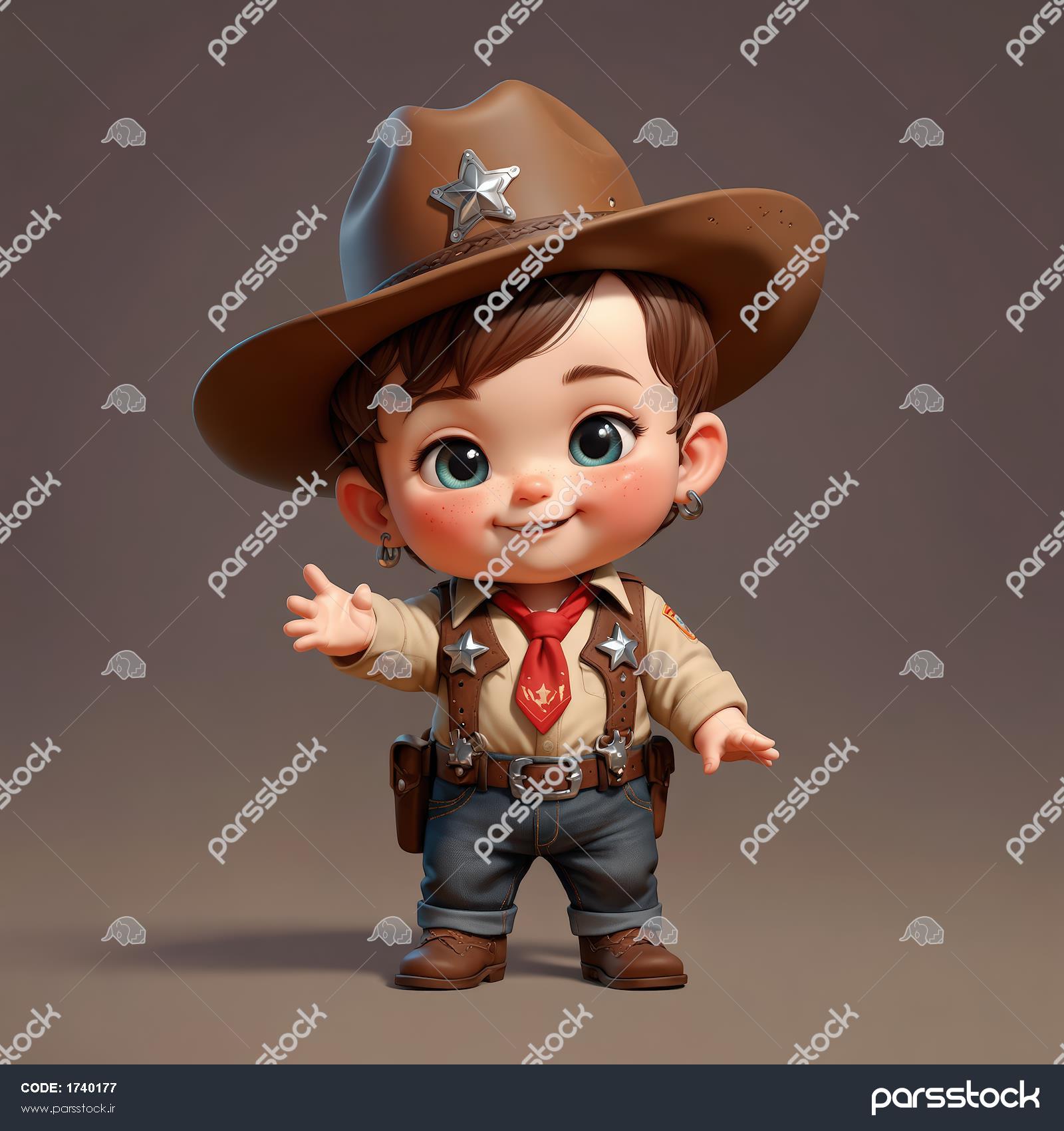 عکس پسر بچه کلانتر با کلاه ستاره دار و کراوات قرمز، پوستر کابوی فانتزی، دانلود طرح سه بعدی