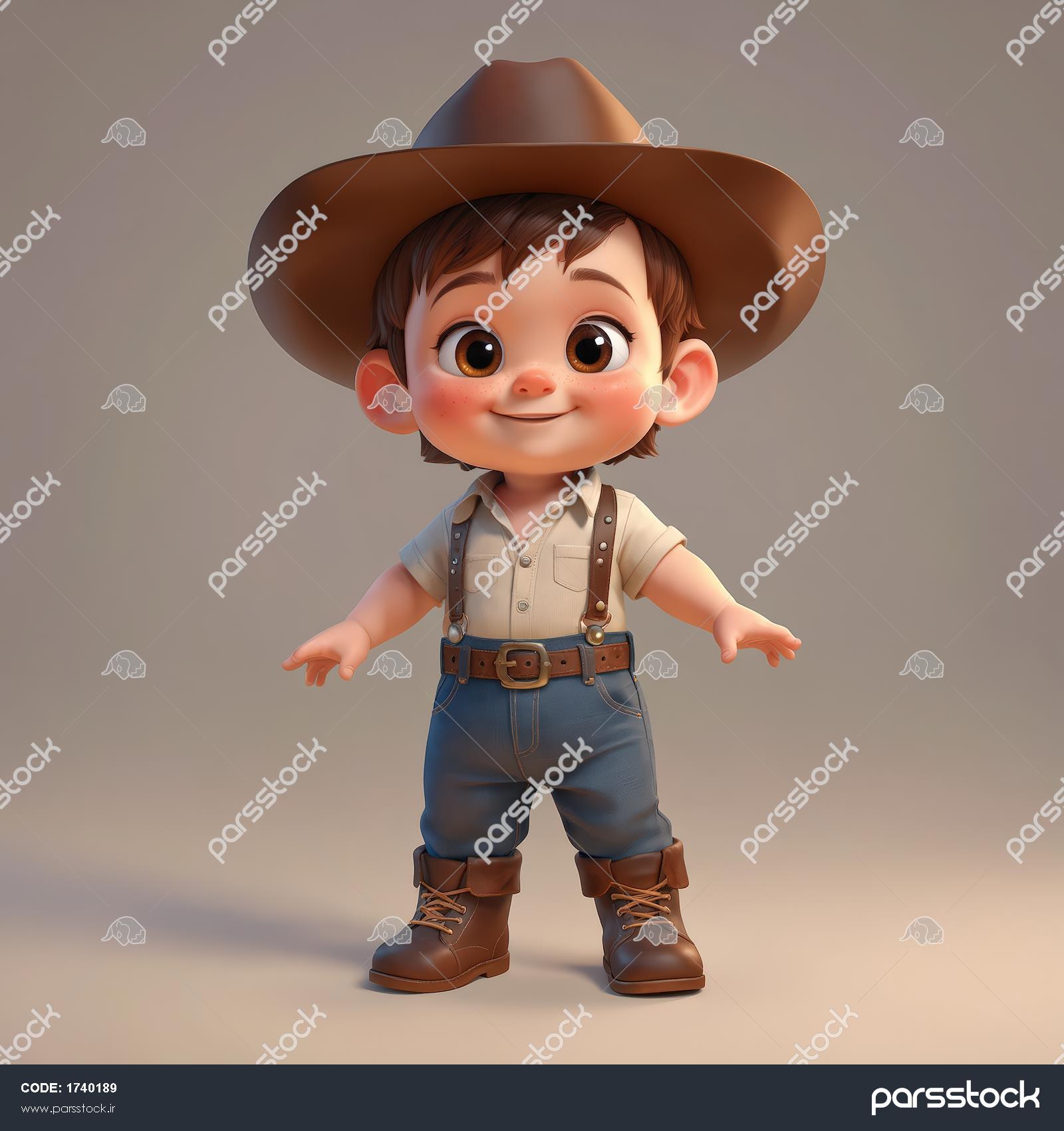 عکس پسر بچه کابوی با ژاکت زرد و کراوات قرمز، پوستر سه بعدی اتاق کودک، دانلود طرح باکیفیت