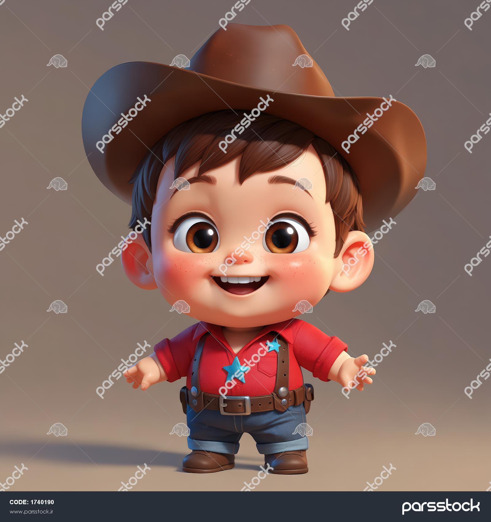 عکس کابوی پسر بچه با ستاره کلانتر و کلاه، دانلود طرح سه بعدی، پوستر اتاق پسرانه