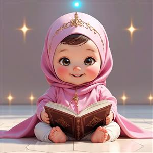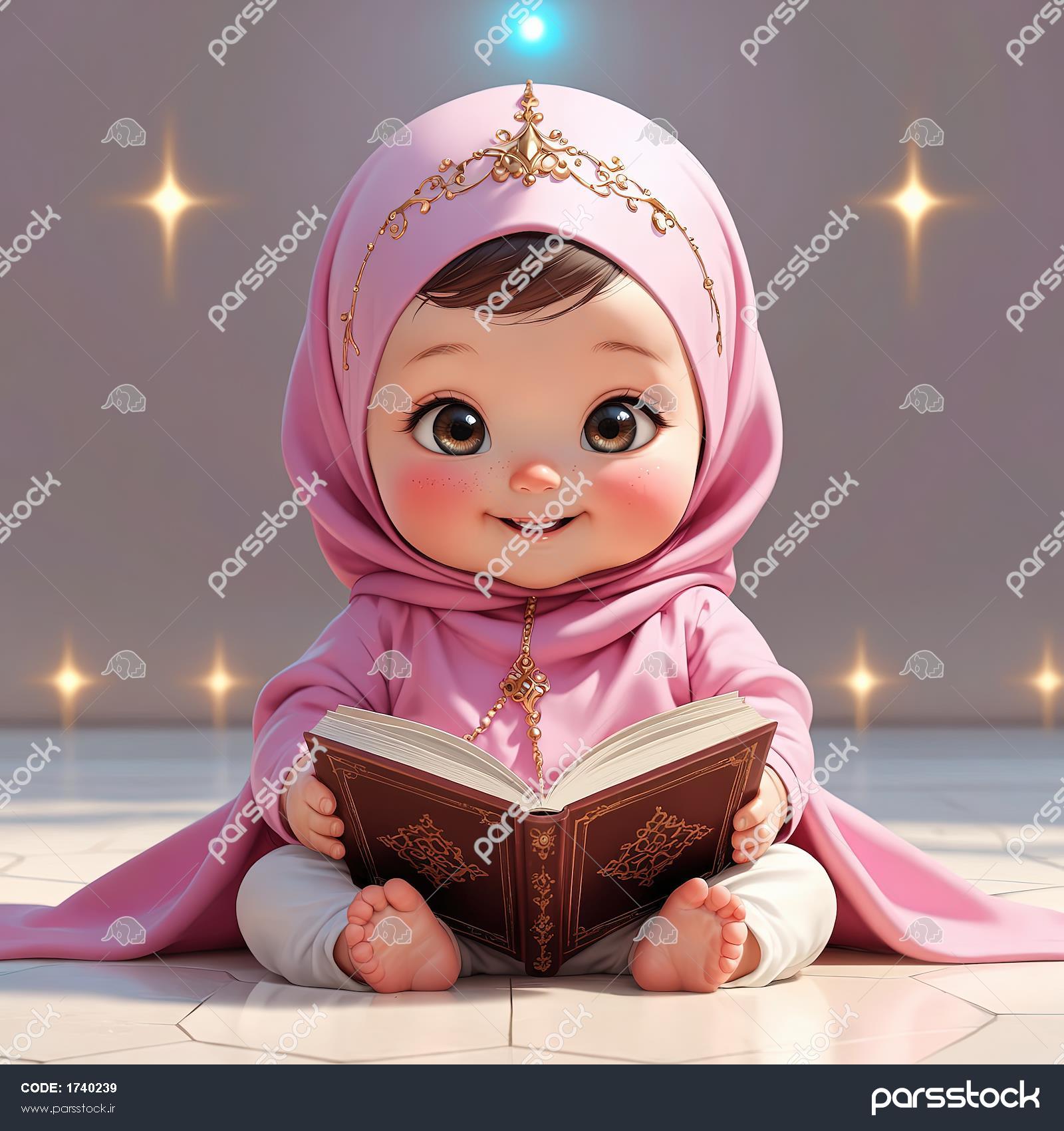 دختر باحجاب صورتی، در حال مطالعه کتاب/قرآن با لبخند معصومانه، تصویرسازی دختر باحجاب فیروزهای، در حال خواندن کتاب قرآن بر روی فرش، تصویرسازی مذهبی دختر باحجاب، در حال خواندن کتاب، روی سجاده، با چراغهای شرقی، تصویرسازی مذهبی نوزاد در حال مطالعه با لباس آبی شرقی و کتاب عتیقه، تصویرسازی با جزئیات نوزاد شاد و معصوم، با کلاه سنتی ، خواندن کتاب نفیس، تصویرسازی نوزاد شاد با لباس اسلامی (نماد ماه و ستاره) و کتاب در محیط مذهبی، تصویرسازی نوزاد شاد با کلاه و لباس سنتی، در حال خواندن قرآن/کتاب در کتابخانه، تصویرسازی دختر بچه کارتونی باحجاب، در حال دعا و نیایش در محیط صورتی و گلآرایی، تصویرسازی دختر بچه کارتونی باحجاب صورتی، شاد، ایستاده میان گلهای بهاری، تصویرسازی دختر بچه کارتونی باحجاب، با لباس صورتی و گل، ایستاده در قاب گلی توری، تصویرسازی نمایش همه