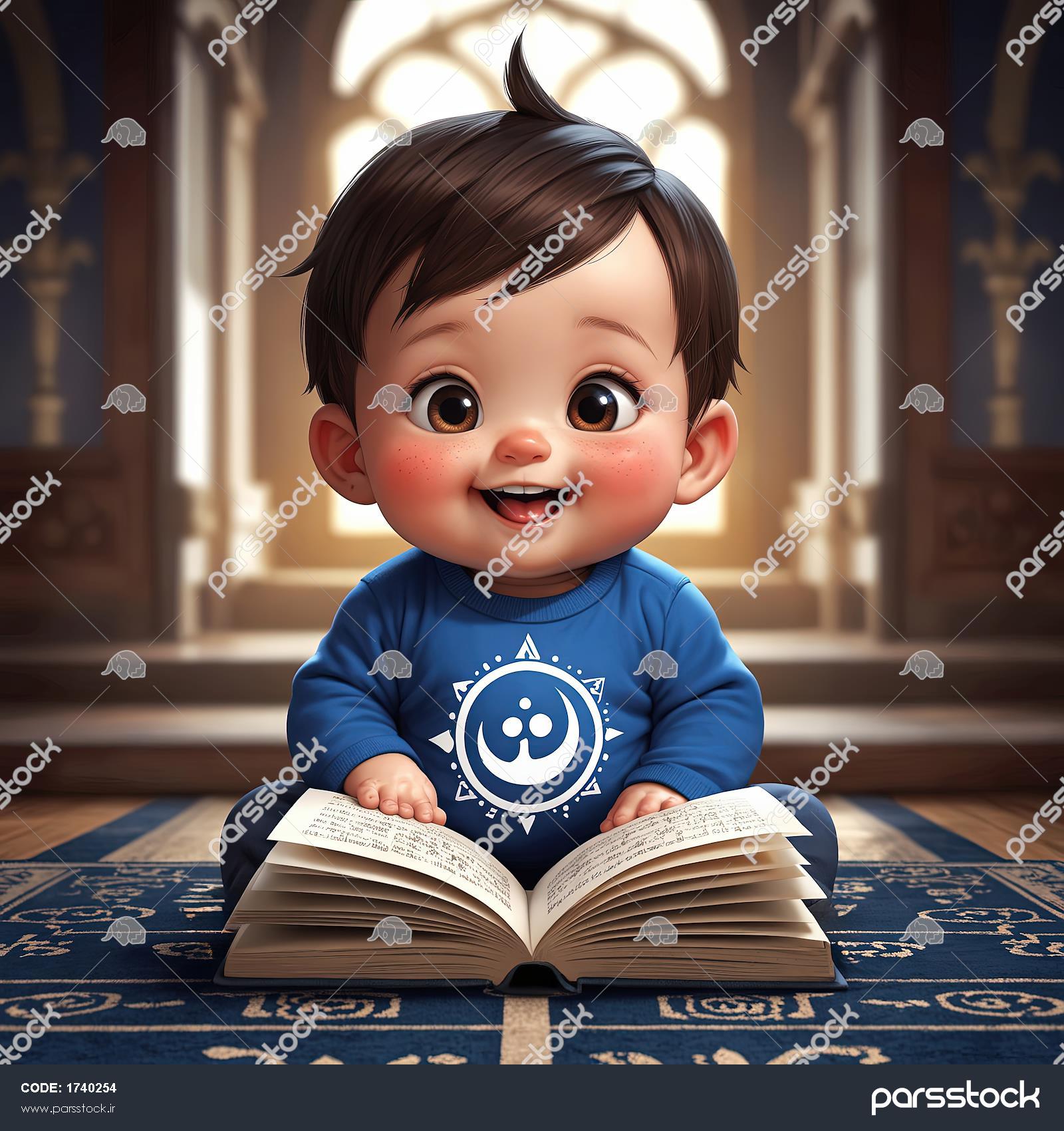 نوزاد شاد با کلاه و لباس سنتی، در حال خواندن قرآن/کتاب در کتابخانه، تصویرسازی تصویر اورجینال کودک کارتونی شاد با لباس آبی و کتاب روی رحل، مناسب برای چاپ عریض و محصولات مذهبی نوزاد در حال مطالعه با لباس آبی شرقی و کتاب عتیقه، تصویرسازی با جزئیات کارتون سه بعدی فرشته دختر با حجاب سفید و لباس مجلسی طلایی، هالهی نور و لبخند شاد بچه کارتونی با کلاه و لباس مذهبی در حال خواندن کتاب قرآن کودک کارتونی شاد با لباس شنای آبی روشن پسزمینه استودیویی تصویر سه بعدی دختر بچه شاد با لباس توری سفید و پاپیون سفید، استودیو تصویر سه بعدی کودک شاد با لباس چیندار صورتی و موهای بلند باز تصویر سه بعدی دختر کوچک شاد با موهای فرفری و لباس پرنسسی سفید کودک کارتونی شاد با لباس شنای آبی در ساحل پسزمینه ساده نمایش همه