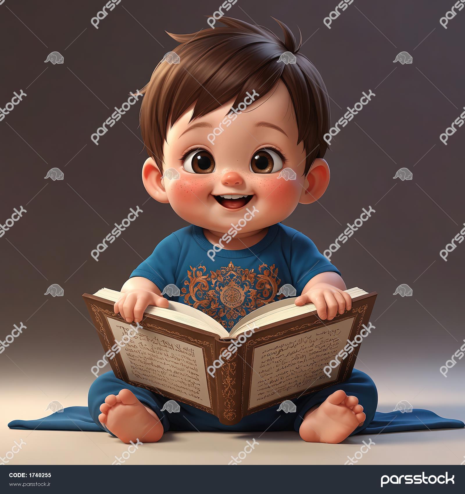 نوزاد شاد با کلاه و لباس سنتی، در حال خواندن قرآن/کتاب در کتابخانه، تصویرسازی نوزاد شاد با لباس اسلامی (نماد ماه و ستاره) و کتاب در محیط مذهبی، تصویرسازی بچه کارتونی با لباس آبی تیره و گردنبند مذهبی در حال خواندن کتاب نفیس، اورجینال و دکوراتیو پسر بچه کارتونی با لباس آبی تیره و کلاه سفید در حال خواندن کتاب، پرایمپریشن بالا برای دکور کودک کارتونی با لباس آبی و کتاب در کتابخانه، اورجینال برای چاپ دکوراتیو با تم آموزشی تصویر اورجینال کودک کارتونی شاد با لباس آبی و کتاب روی رحل، مناسب برای چاپ عریض و محصولات مذهبی تصویر کودک کارتونی با کلاه سفید و لباس ساده در حال مطالعه قرآن یا کتاب مذهبی، کیفیت بالا تصویر کودک پرنسس با موی گوجهای در حال نشستن با لبخند و لباس آبی سیندرلایی تصویر کلوزآپ کودک پرنسس با لباس آبی و تاج نشسته با دستهای به هم گرهخورده پسر فوتبالیست کارتونی، لباس آبی ، تصویرسازی نمایش همه