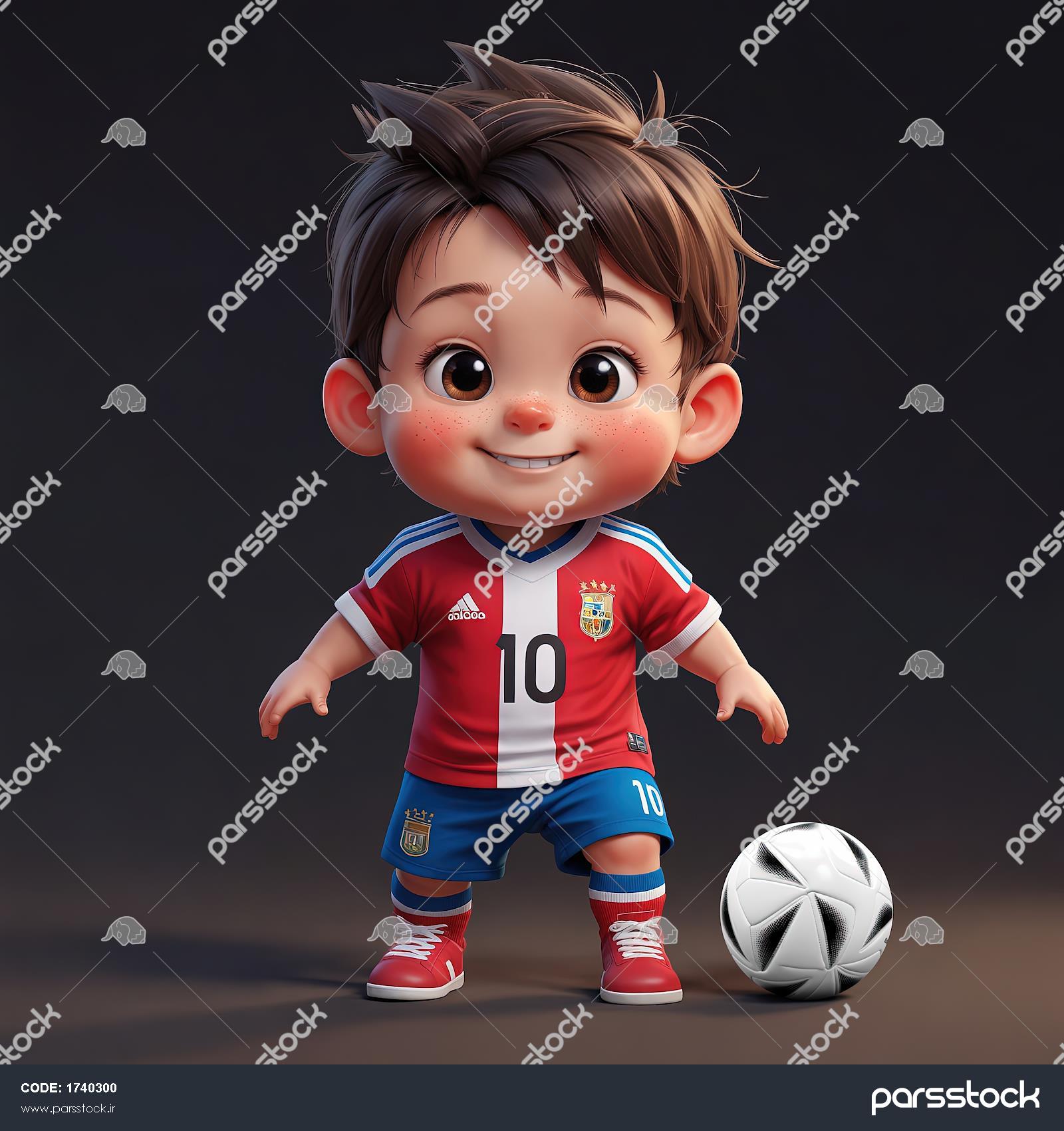 پسر کارتونی فوتبالیست با لباس قرمز و شماره 10، تصویر باکیفیت بالا برای چاپ دکور اتاق کودک