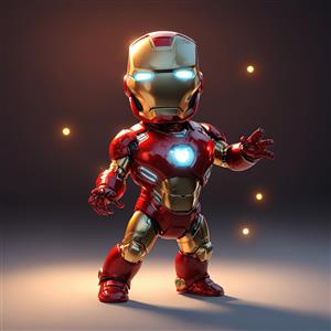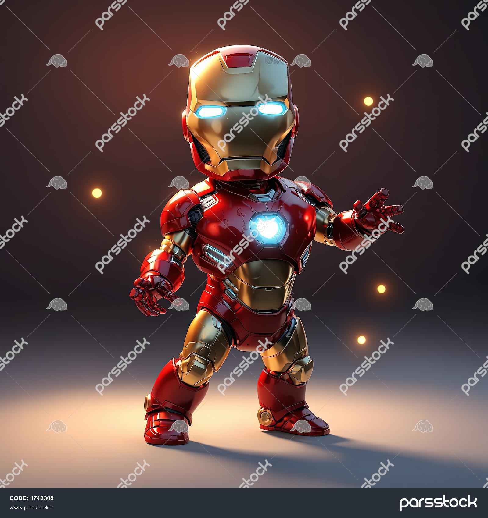 عکس آیرون من کودک با افکت نورهای نارنجی کوچک (ذرات انرژی)