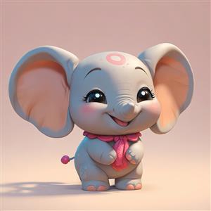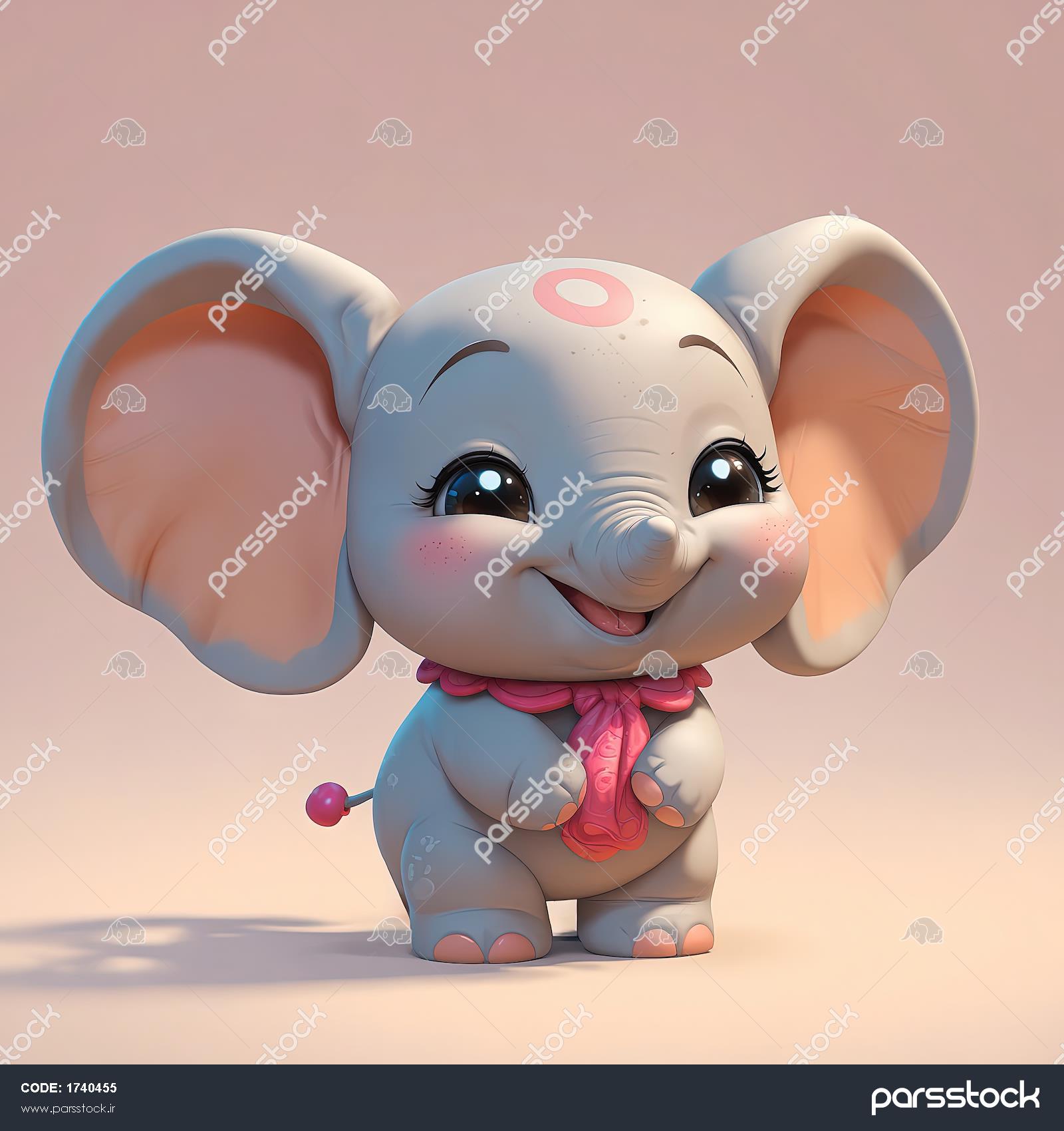 فیل عروسکی بانمک نشسته با شال گردن صورتی روی پس زمینه پاستلی