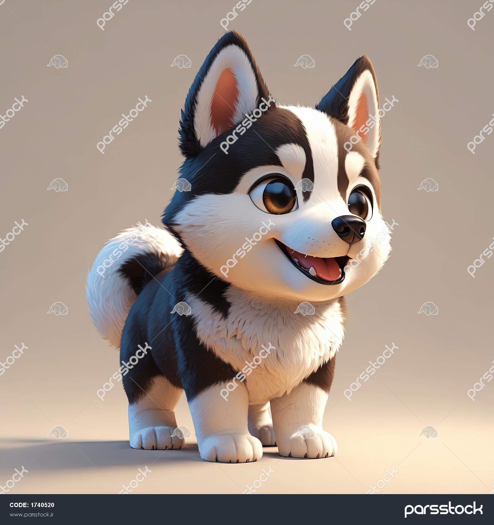 تصویر هاسکی کارتونی ایستاده با پاهای سفید و صورت شاد