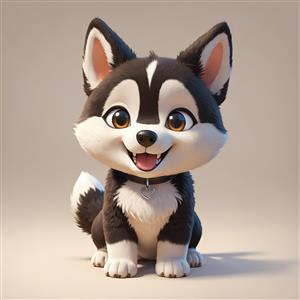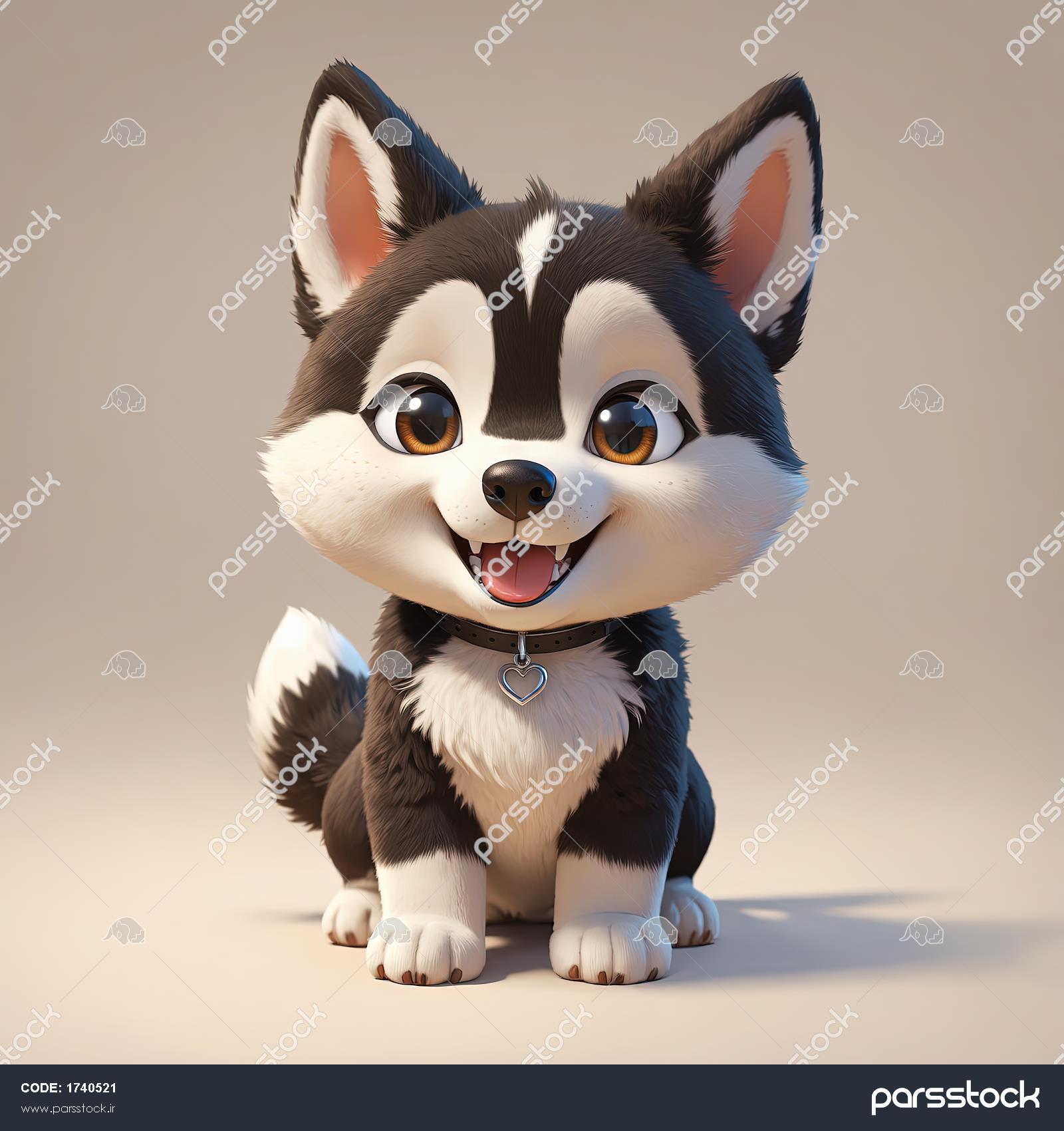 وکتور توله سگ هاسکی نشسته با پلاک قلبی مشکی و زمینه روشن