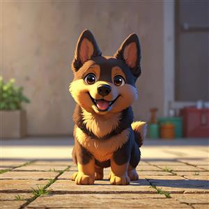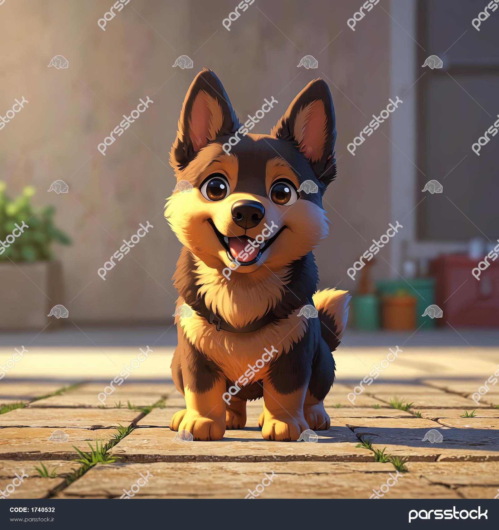سگ کارتونی ژرمن در حیاط خانه با کفپوش آجری و نور خورشید