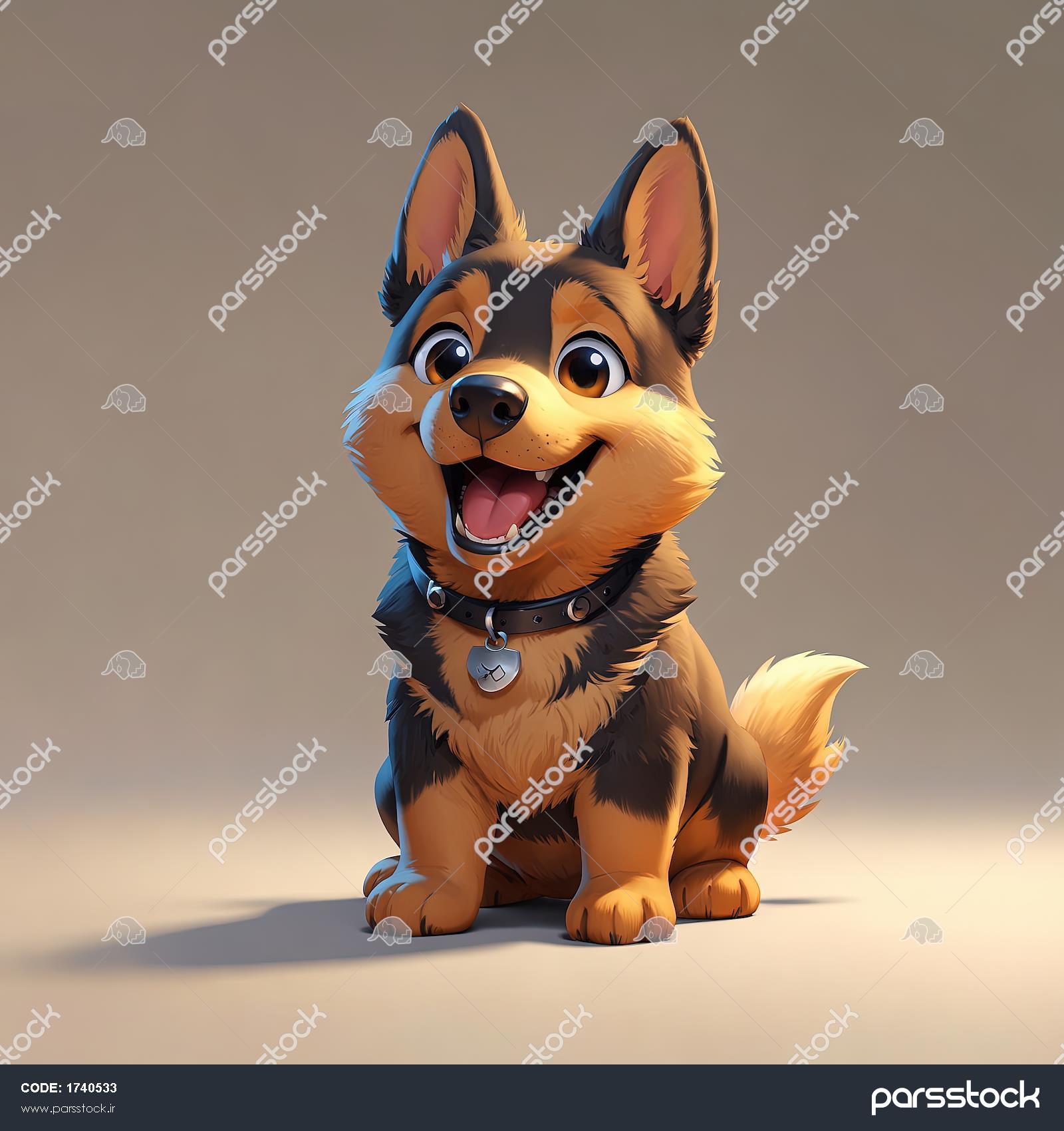 تصویر سگ ژرمن/کُرگی کارتونی نشسته با یقه مشکی و پلاک قلبی