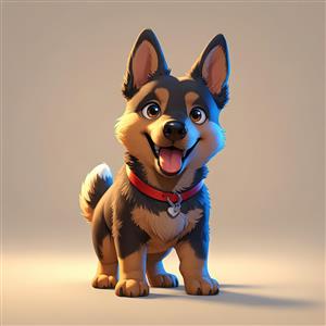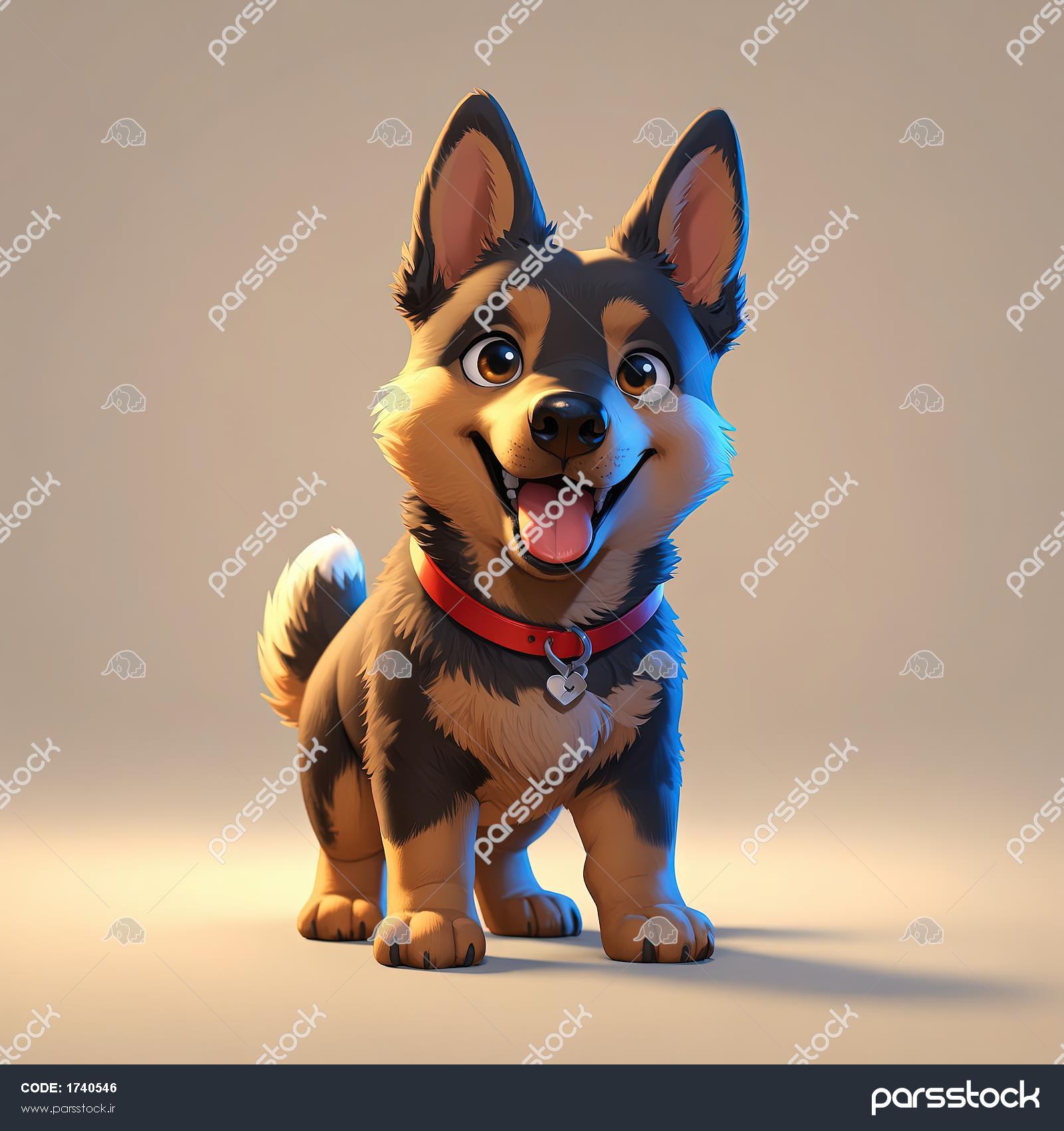 تصویر کارتونی ژرمن شپرد کوچک با دم پشمالو و چشم‌های درشت