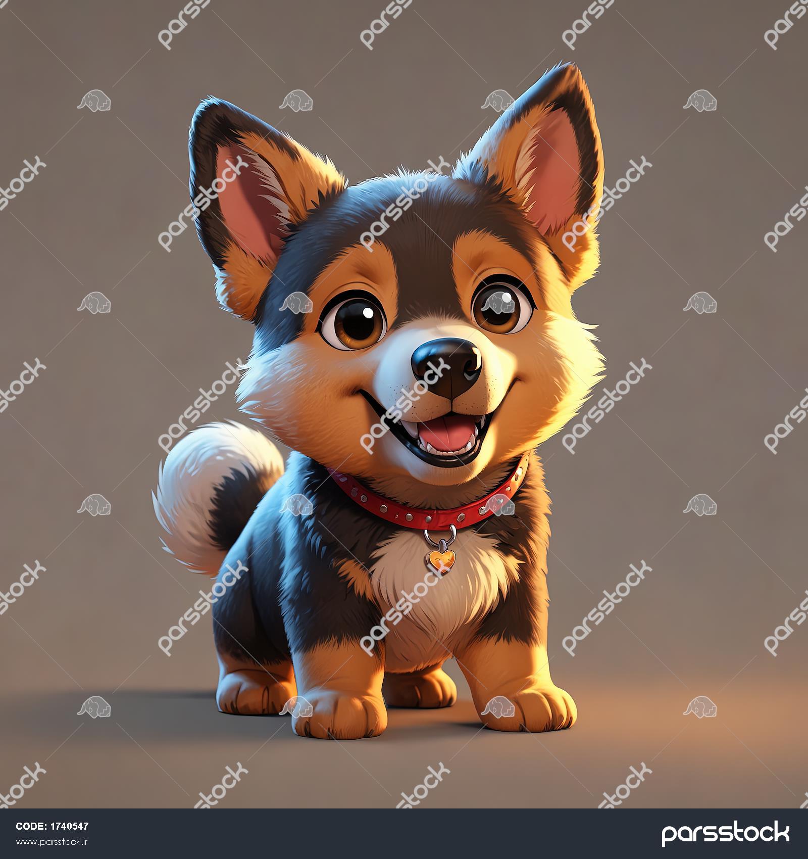 سگ بانمک با یقه قرمز و پلاک قلبی شکل روی زمینه ساده