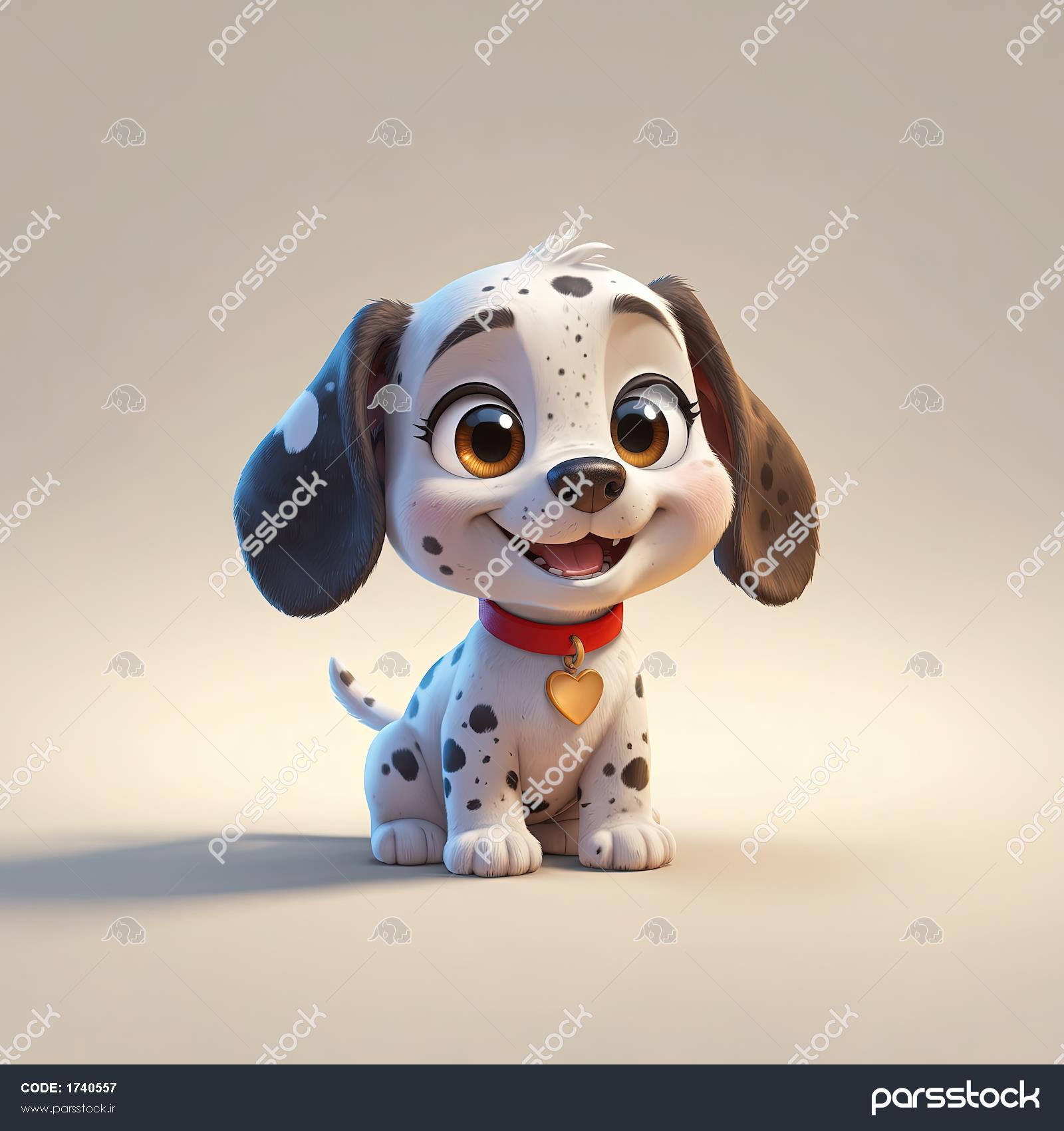 استیکر سگ دالماسین با قلاده قرمز و آویز طلایی، مناسب برای طراحی محصول