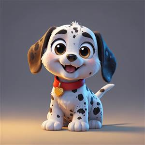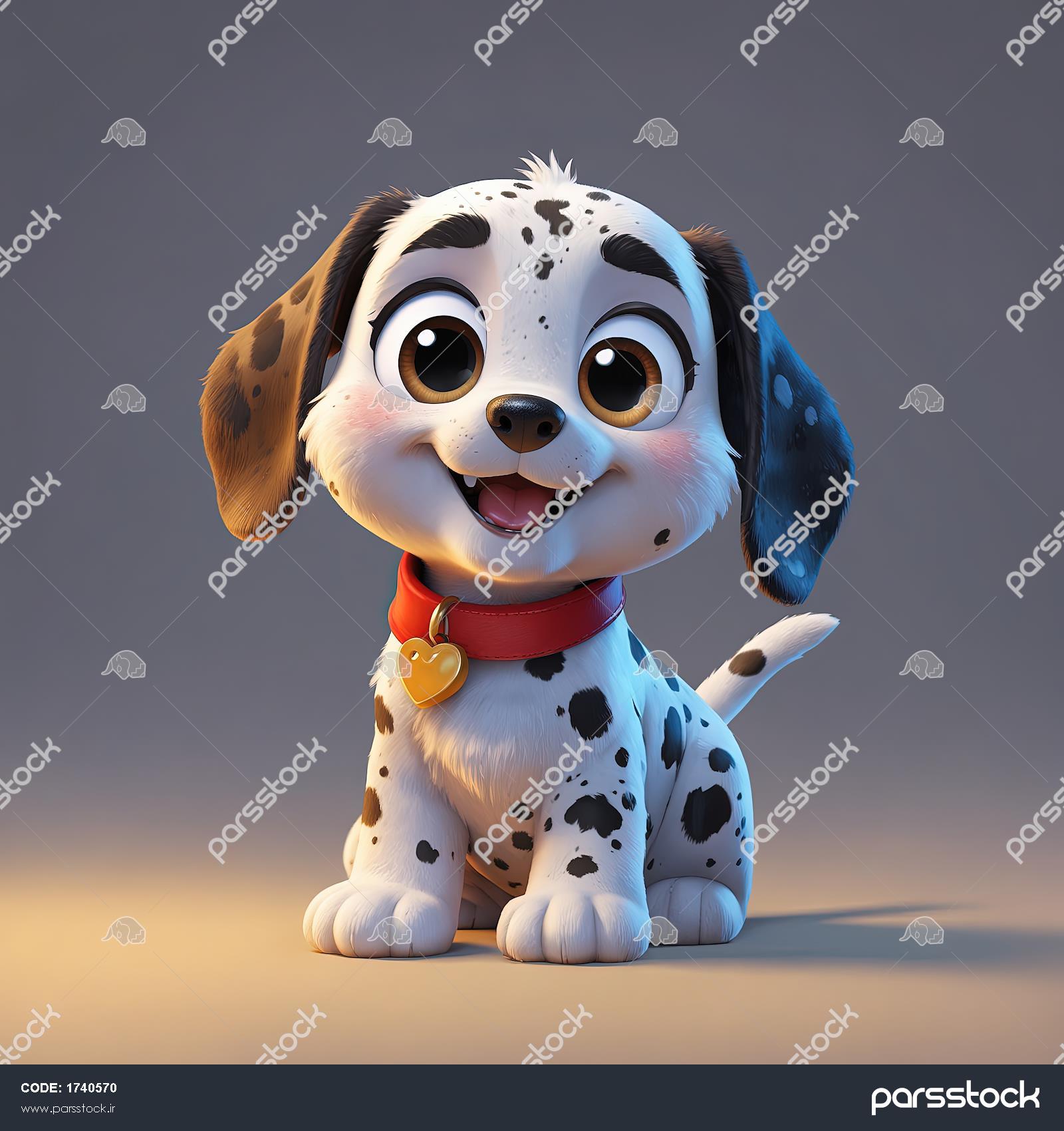 تصویر گرافیکی سگ دالماسین خندان با قلاده قرمز و آویز قلب طلایی