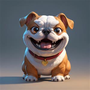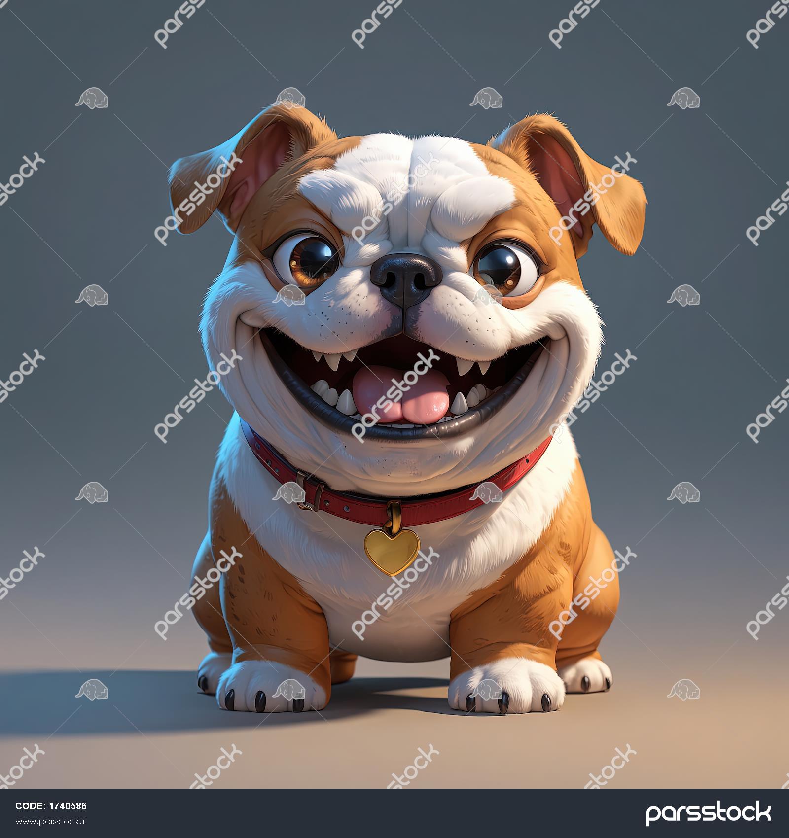 استیکر سگ بولداگ خندان با قلاده قرمز و آویز قلب طلایی