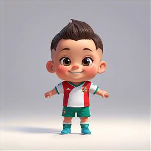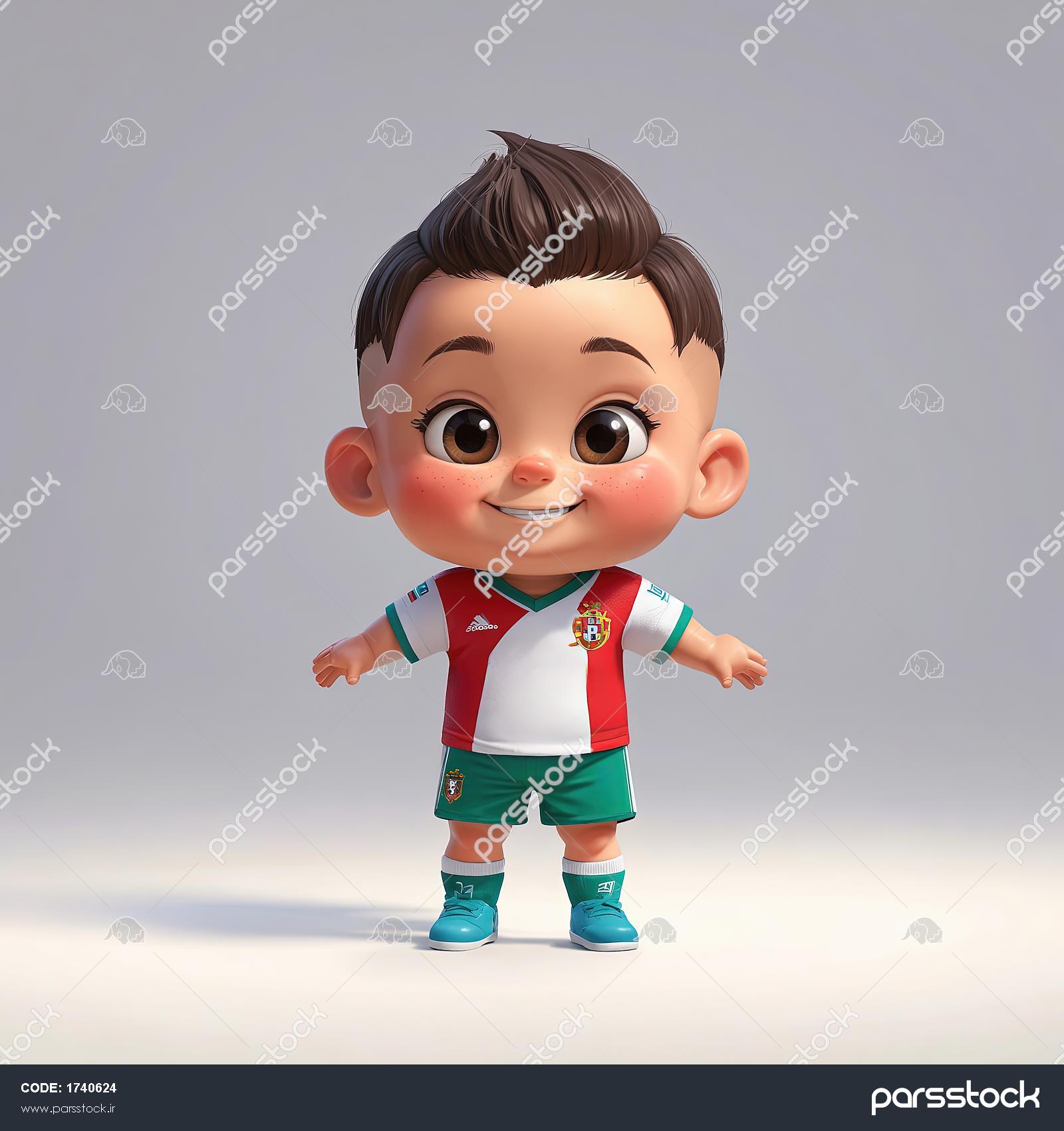 دانلود عکس سه‌بعدی کودک فوتبالیست کارتونی با پیراهن قرمز و سبز